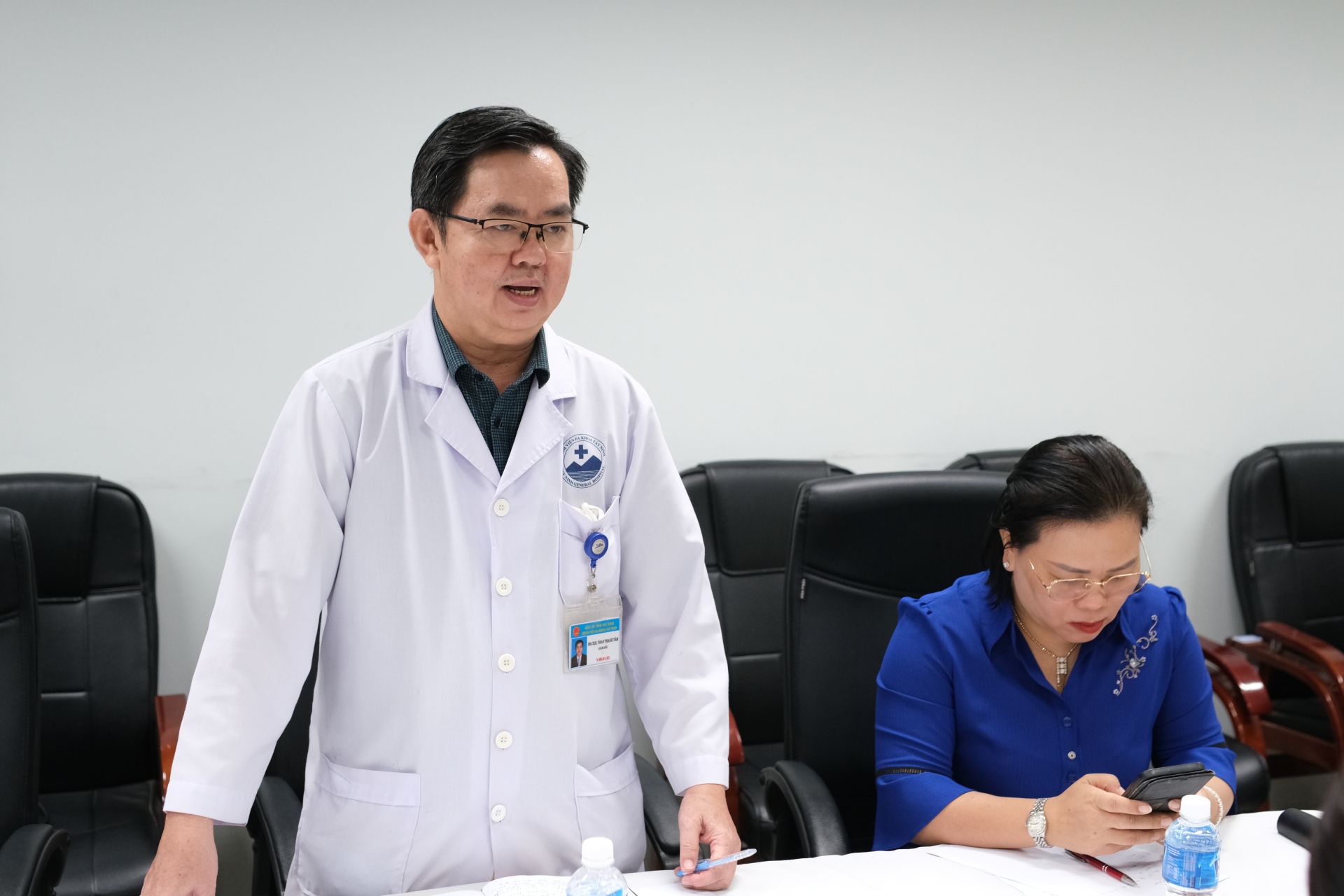 Bác sĩ Phan Thanh Tâm- Giám đốc Bệnh viện đa khoa Tây Ninh báo cáo tình hình tại bệnh viện với đoàn khảo sát số 1.