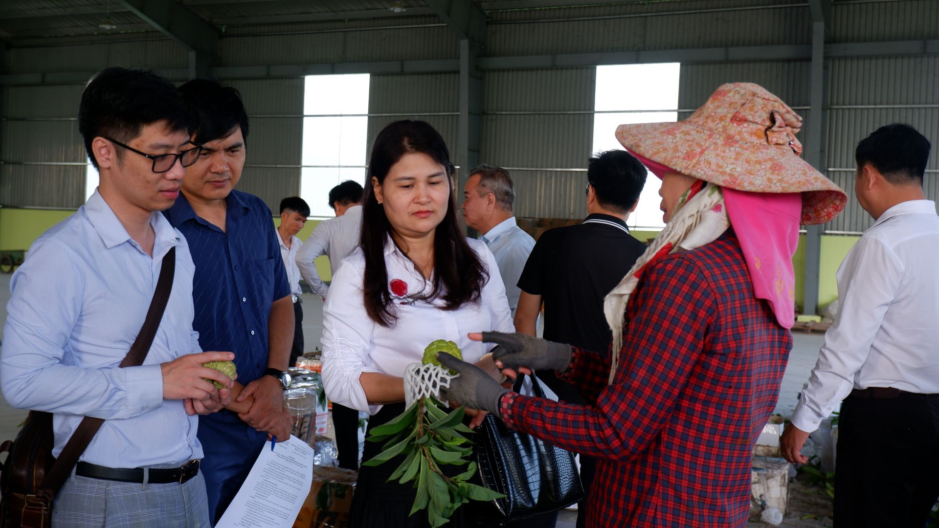 Đoàn công tác làm việc tại HTX mãng cầu Thạnh Tân.