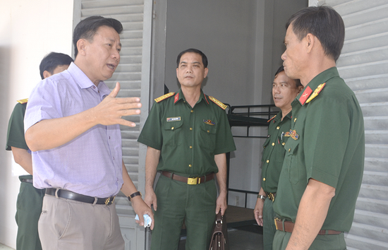 Phó Chủ tịch UBND tỉnh Nguyễn Thanh Ngọc khảo sát khu vực cách ly tập trung tại khu Huấn luyện dự bị động viên trực thuộc Bộ CHQS tỉnh.