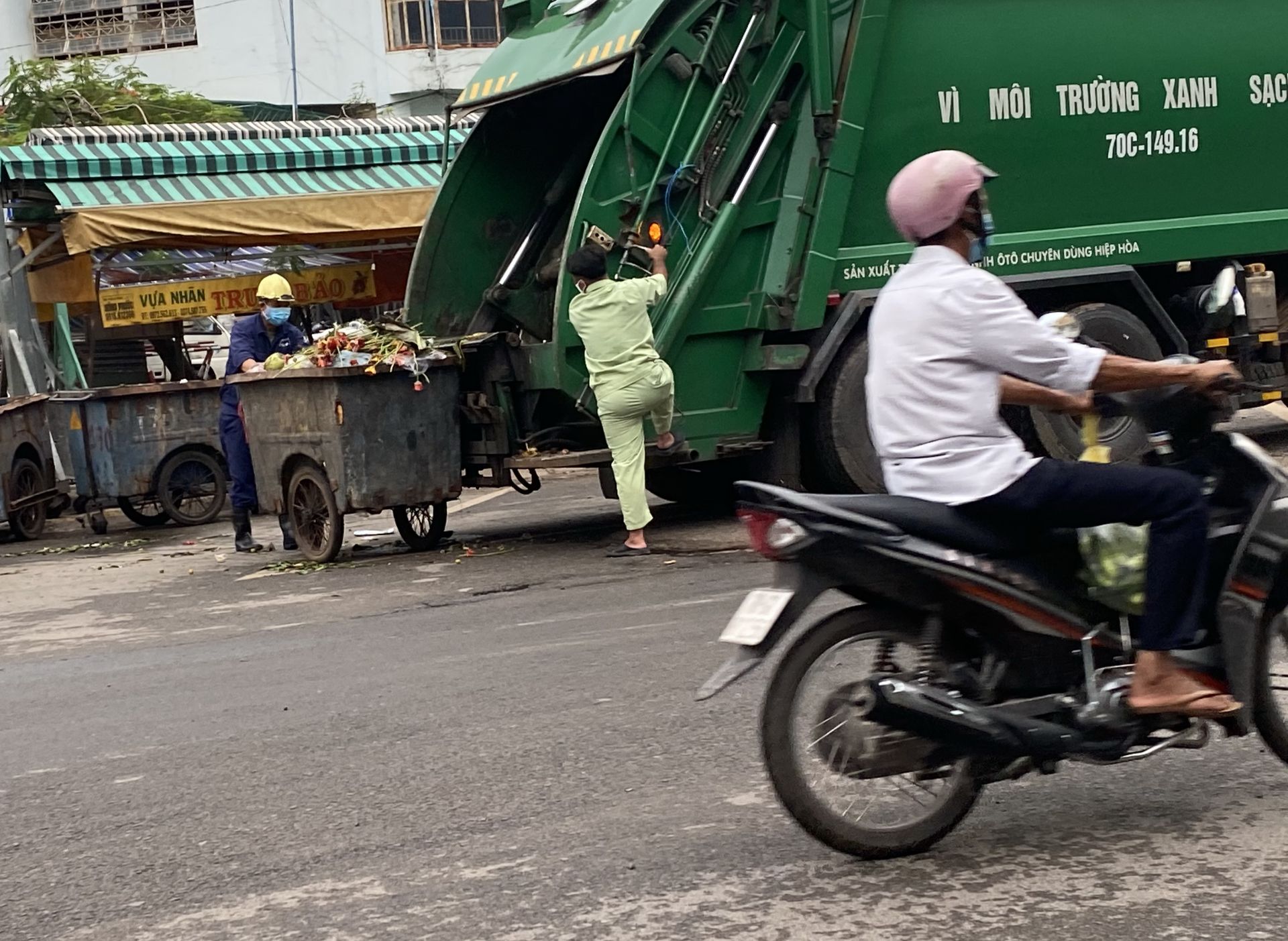 Công nhân thu gom rác.