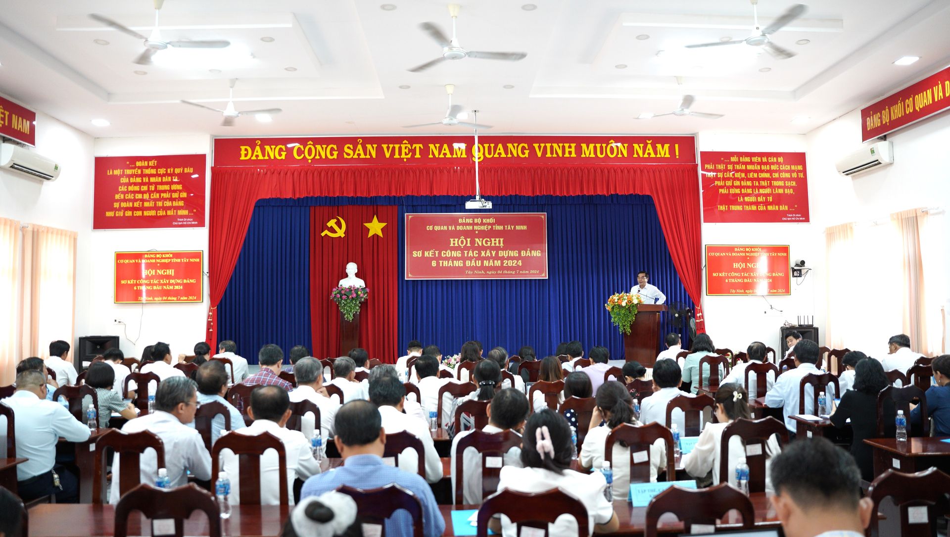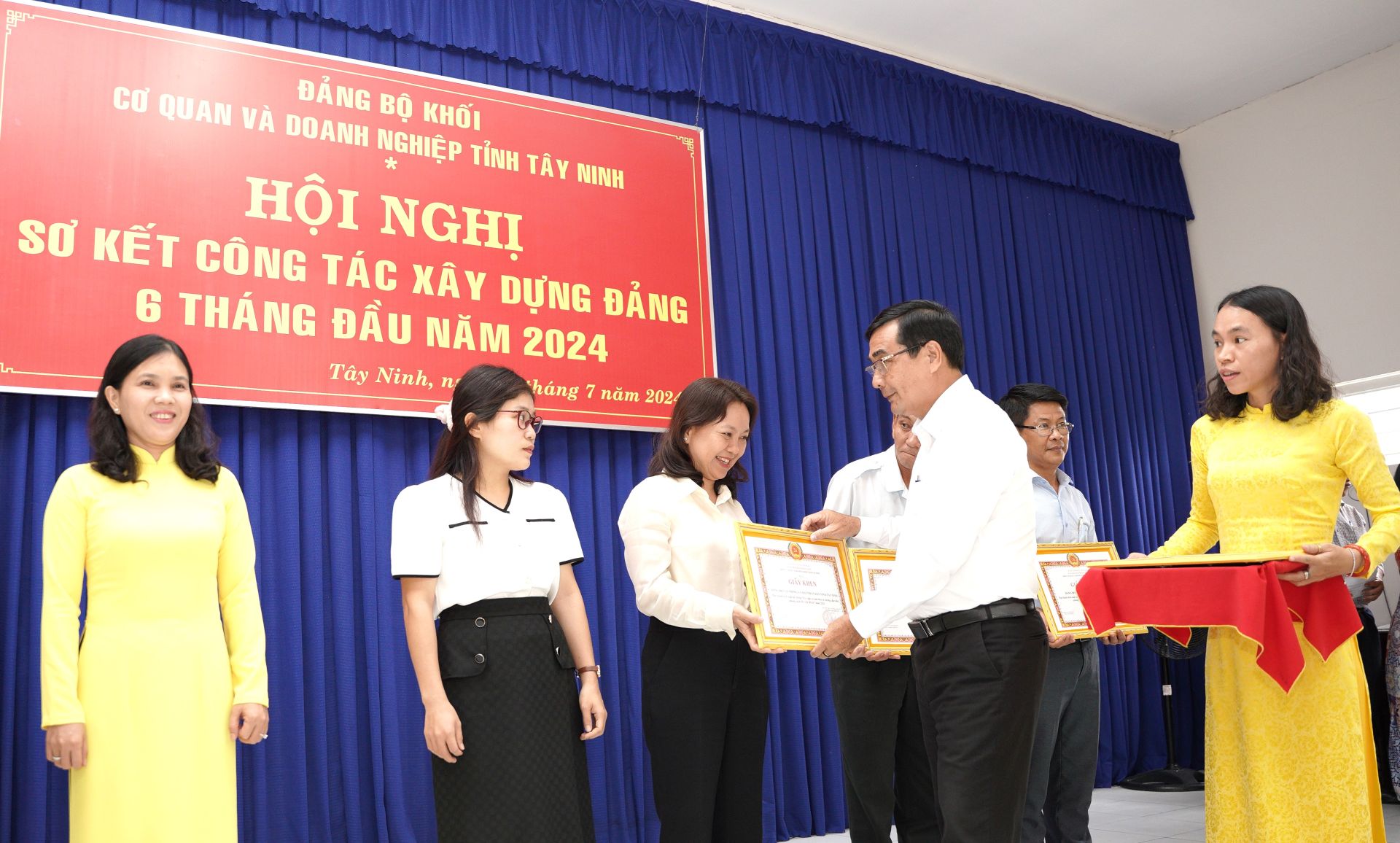 Chiều 4.7, Đảng bộ khối Cơ quan và Doanh nghiệp (CQ&DN) tỉnh tổ chức sơ kết công tác xây dựng Đảng 6 tháng đầu năm 2024 và khen thưởng các tập thể, cá nhân điển hình trong học tập và làm theo tư tưởng, đạo đức, phong cách Hồ Chí Minh. Ông Trịnh Văn Phước- Bí thư Đảng uỷ Khối CQ&DN tỉnh chủ trì hội nghị.