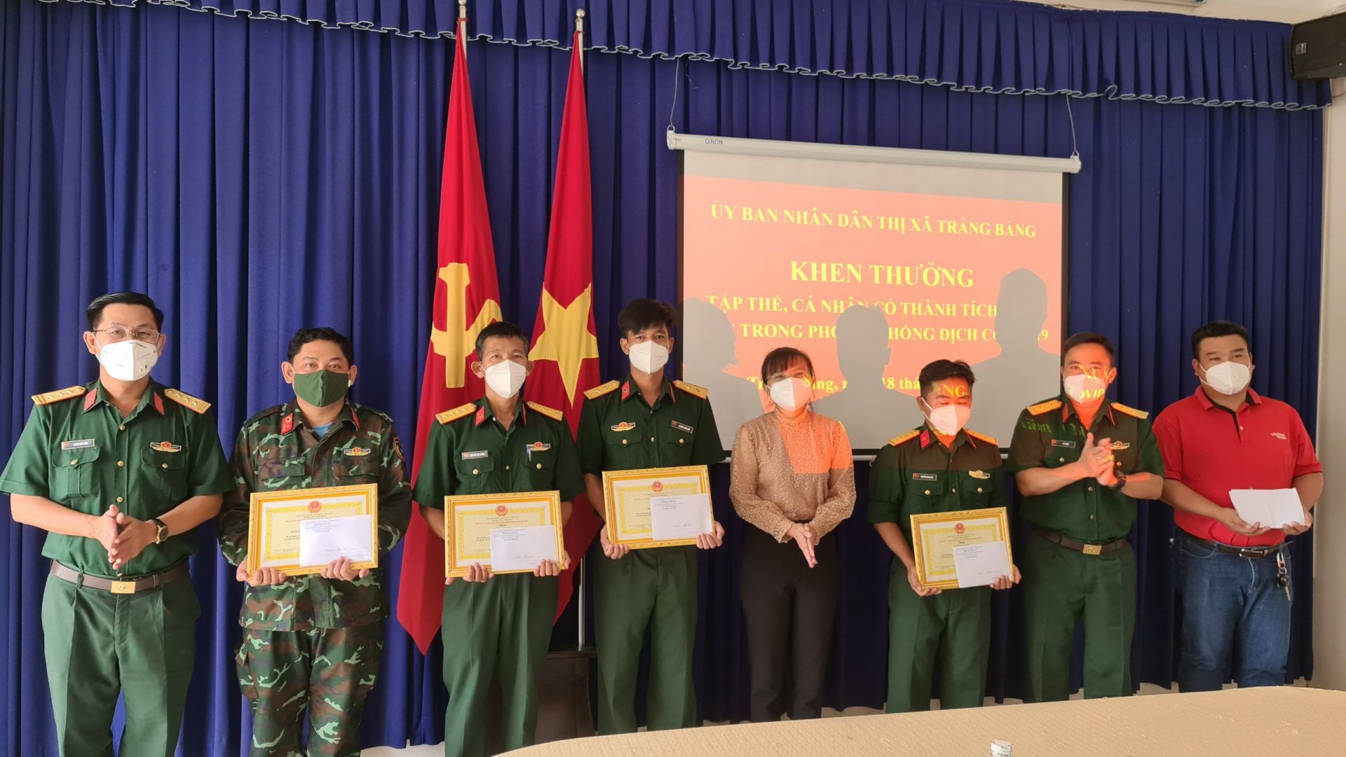 Các cá nhân, tập thể được khen thưởng là lực lượng y, bác sĩ, cán bộ chiến sĩ Sư đoàn 5, Bộ Chỉ huy Quân sự tỉnh, lực lượng tình nguyện và Viettel Trảng Bàng, hỗ trợ tiêm vaccine tại các khu công nghiệp và xã, phường trên địa bàn thị xã.