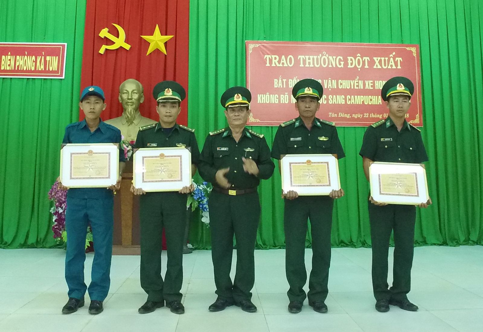 Tập thể và 4 cá nhân được khen thưởng thuộc Đồn biên phòng Kà Tum, Đội đặc nhiệm phòng chống ma túy tội phạm và Dân quân xã Tân Đông.