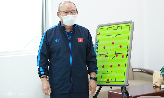 Trong cuộc phỏng vấn với VnExpress mới đây, HLV Park cho biết đang phải tìm sơ đồ chiến thuật mới, trong bối cảnh lối chơi quen thuộc hơn hai năm qua có dấu hiệu bị bắt bài. Nhưng do bóng đá Việt Nam hầu như không hoạt động suốt bốn tháng qua, việc ông ngồi trong phòng kín để xếp chiến thuật cho... các trận đấu chỉ diễn ra ít nhất là sau năm tháng nữa, chẳng khác gì đang đánh "cờ mù".