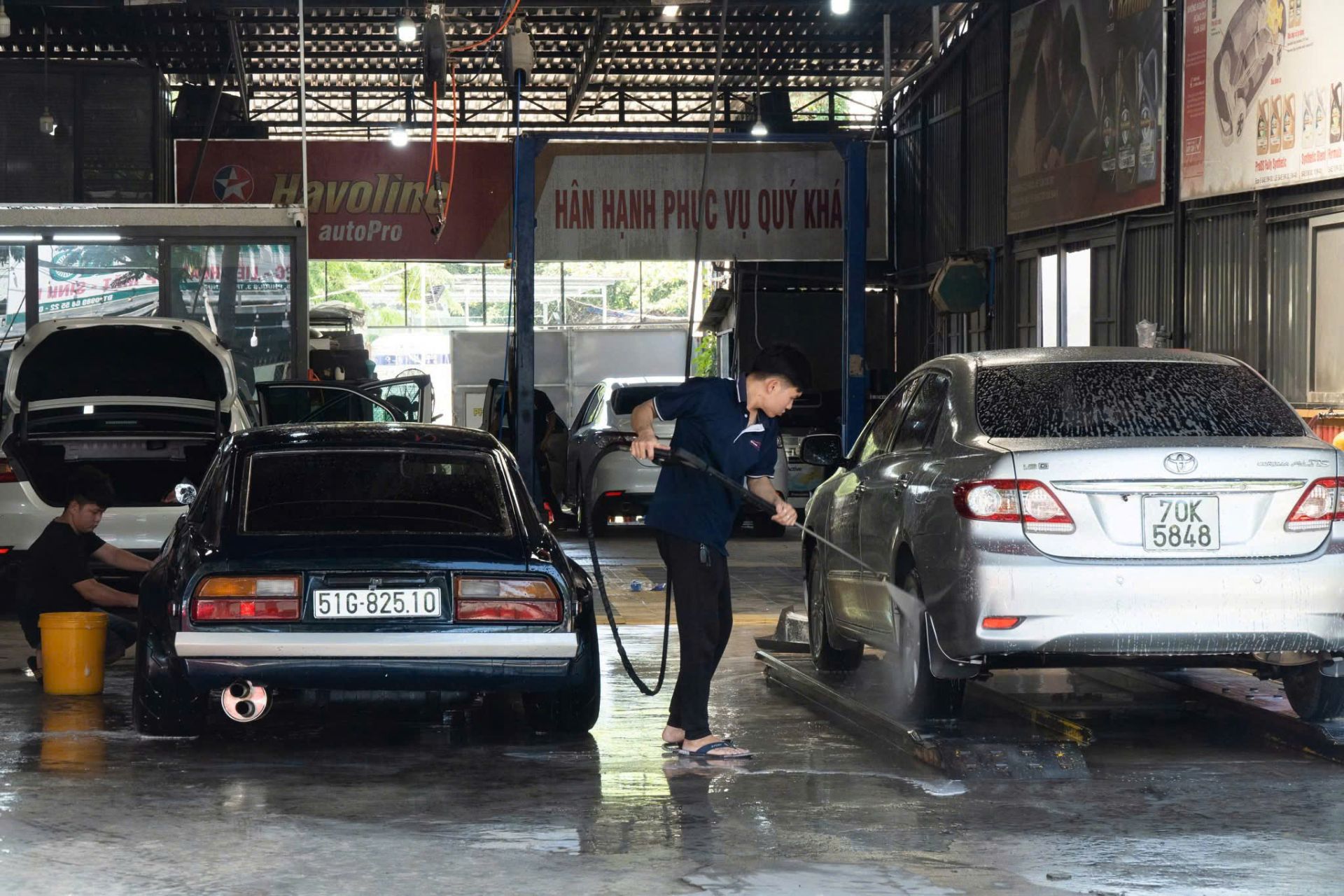 Garage của anh Trần Hoằng Phước ứng dụng nhiều công nghệ hiện đại trong chăm sóc, bảo dưỡng xe ô tô.
