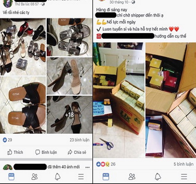 Một tài khoản facebook kinh doanh mỹ phẩm, quần áo, giày dép.