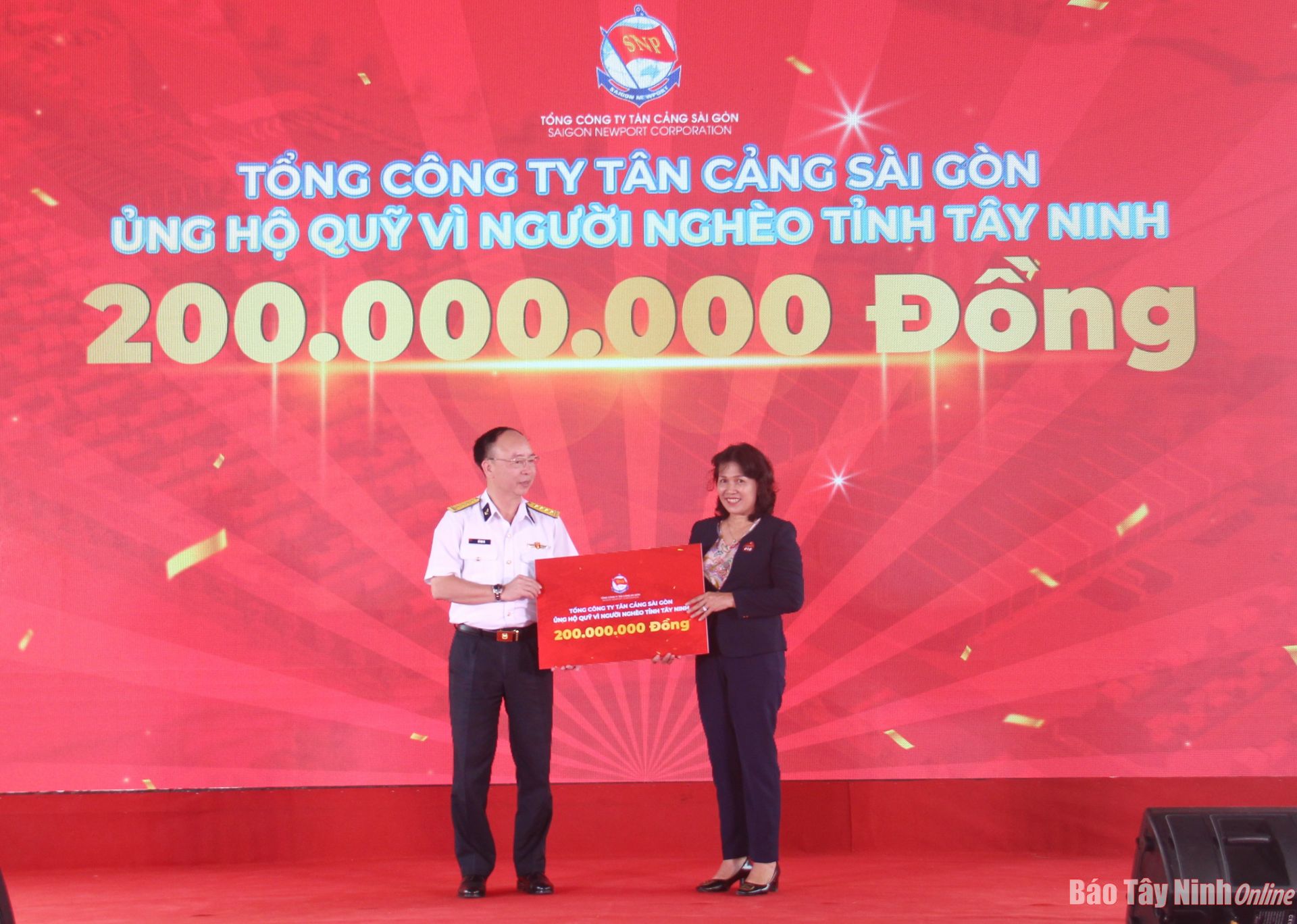 Nhân dịp này, Tổng Công ty Tân Cảng Sài Gòn trao tặng cho Quỹ Vì người nghèo của tỉnh 200 triệu đồng, và Quỹ Vì người nghèo huyện Bến Cầu 50 triệu đồng.