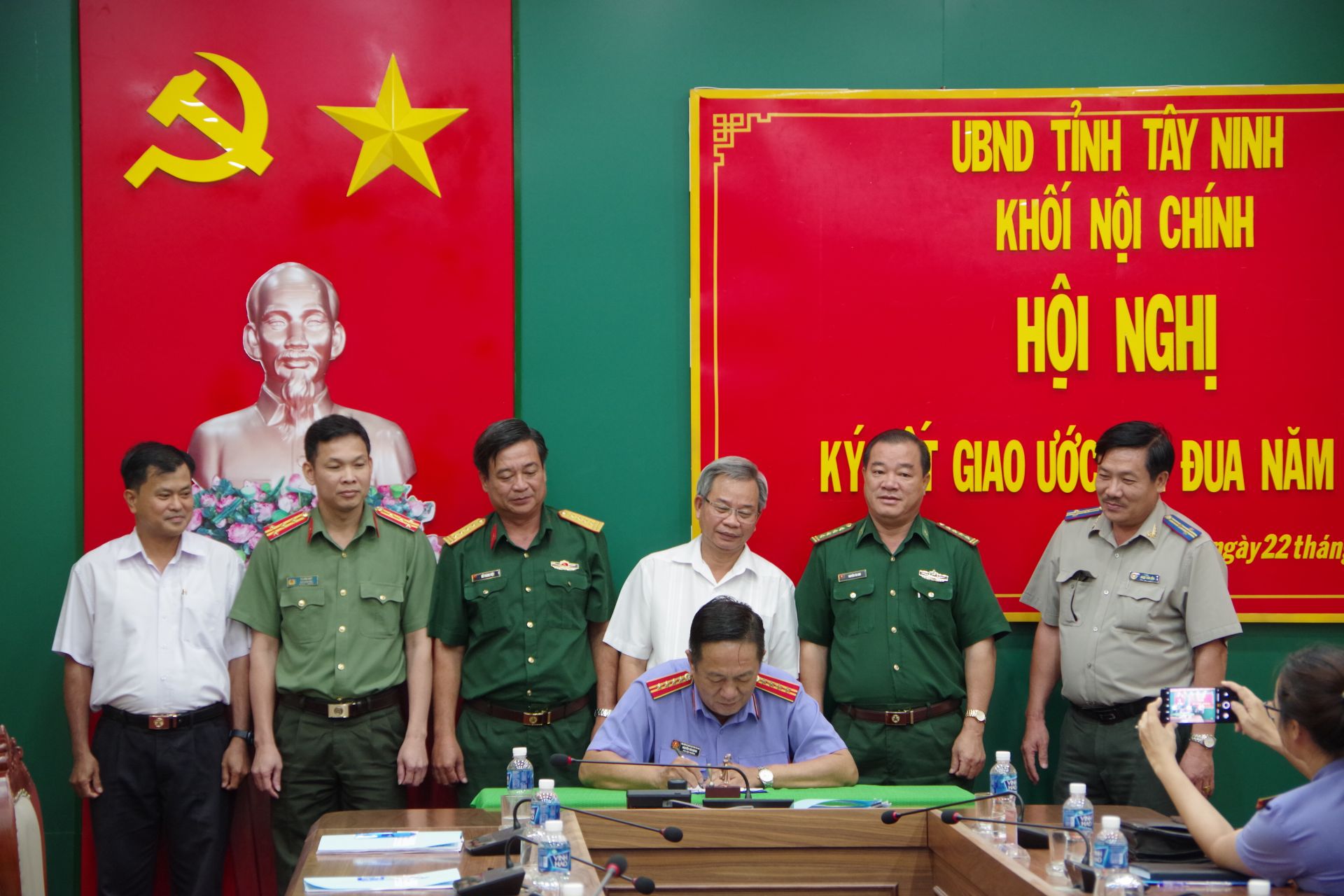 Các đơn vị ký kết giao ước thi đua với những nội dung như: Tiếp tục thực hiện hiệu quả các Chỉ thị của cấp trên về công tác thi đua, khen thưởng; tiếp tục đẩy mạnh việc học tập và làm theo tư tưởng, đạo đức, phong cách Hồ Chí Minh; thực hiện thắng lợi nghị quyết Đại hội Đảng các cấp; làm tốt chức năng tham mưu, đề xuất cho Tỉnh ủy, HĐND, UBND tỉnh chỉ đạo và tổ chức thực hiện các nhiệm vụ chính trị của địa phương; đẩy mạnh phong trào thi đua quyết thắng trong lực lượng vũ trang, phong trào quần chúng bảo vệ an ninh Tổ quốc, giữ gìn an ninh chính trị, trật tự an toàn xã hội; nâng cao hiệu lực, hiệu quả quản lý nhà nước; thực hiện tốt quy chế dân chủ cơ sở, công tác dân vận chính quyền….