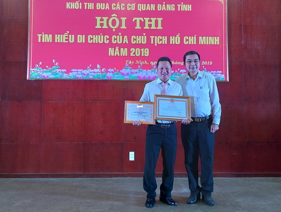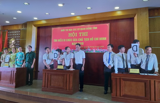 Ngày 30.8, tại hội trường Tỉnh uỷ, Khối thi đua các cơ quan Đảng tỉnh tổ chức Hội thi tìm hiểu Di chúc của Chủ tịch Hồ Chí Minh và nghiệp vụ công tác thi đua khen thưởng.