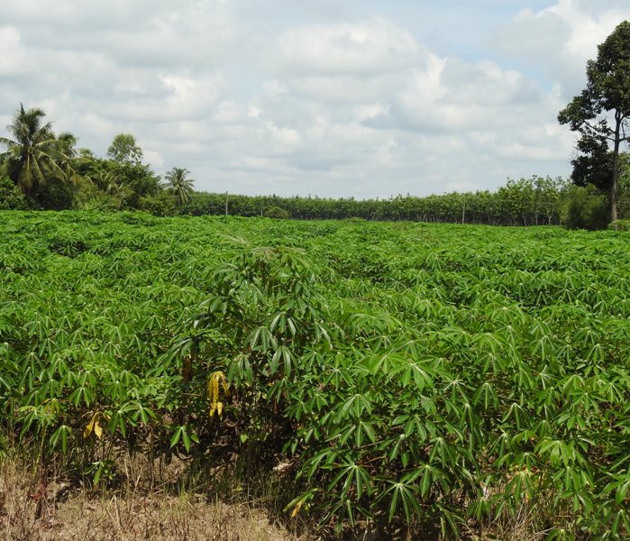 Gia đình ông Tiển trồng mì trên đất được cấp sổ đỏ cho gia đình ông Hân.