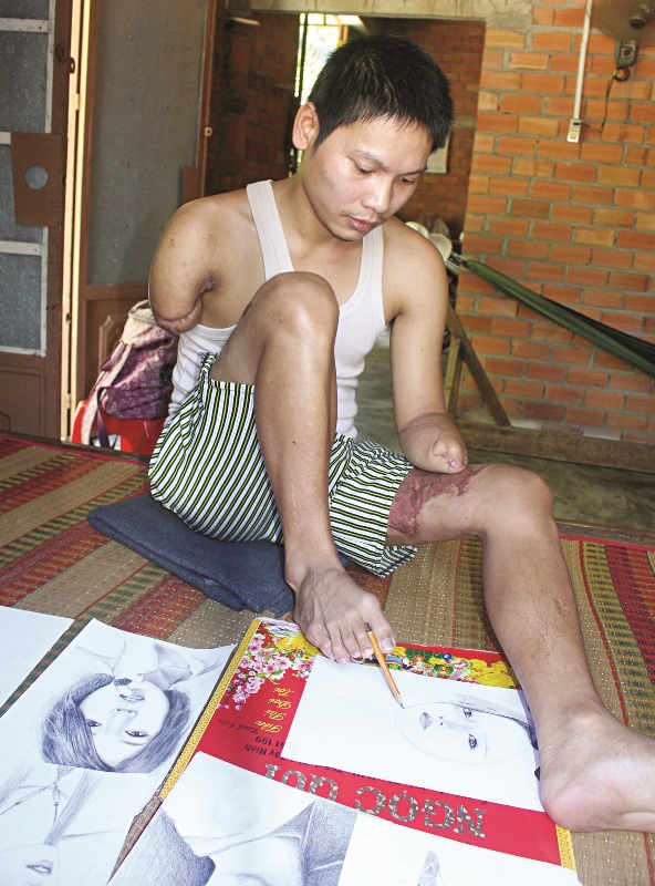 Nhờ sự kiên trì rèn luyện, giờ đây Tây không chỉ viết chữ được, mà còn có thể vẽ tranh- đều bằng chân. Vốn có năng khiếu vẽ từ nhỏ, Tây vẽ rất đẹp. Nhưng vẽ được một bức tranh đẹp đối với người bình thường, đầy đủ chân tay đã khó, với một người không còn đôi tay như Tây càng khó hơn gấp bội.