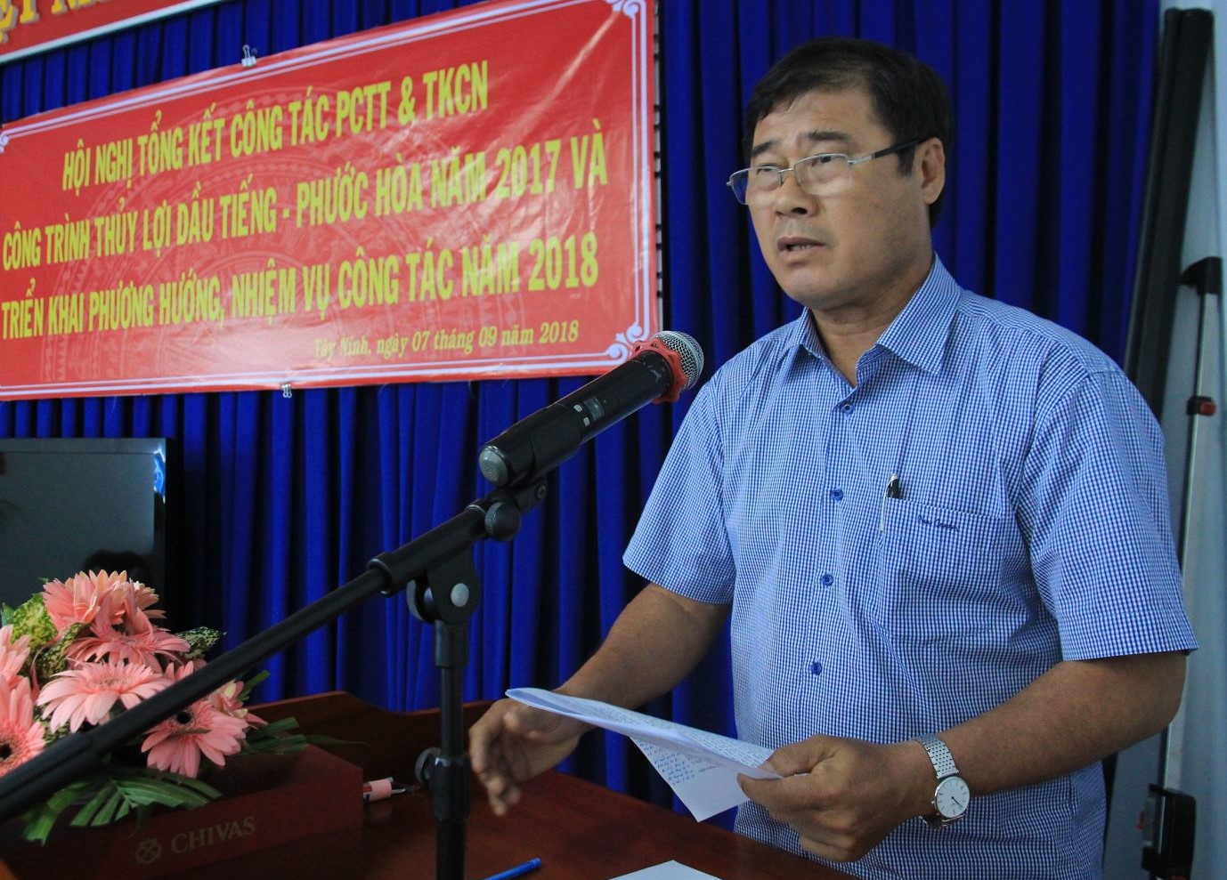 Ông Trần Văn Chiến - Phó Chủ tịch UBND tỉnh Tây Ninh, Phó trưởng Ban chỉ huy PCTT-TKCN công trình thuỷ lợi Dầu Tiếng - Phước Hoà chủ trì hội nghị.