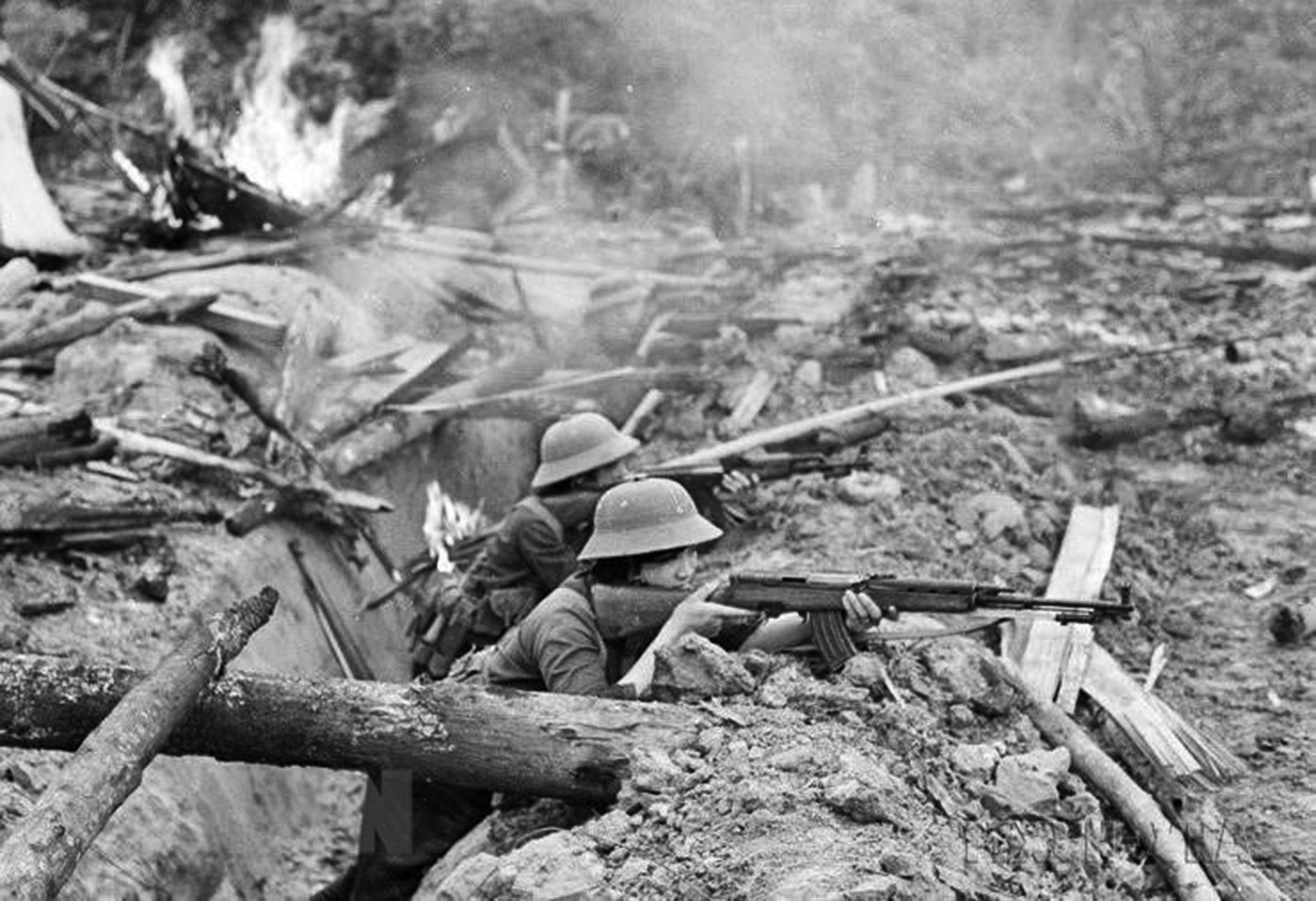 Các nữ chiến sĩ tự vệ Lâm trường Bản Phiệt, huyện Mường Khương, tỉnh Hoàng Liên Sơn (nay thuộc tỉnh Lào Cai) bám trụ chiến đấu, phối hợp bộ đội địa phương đánh lui nhiều đợt tấn công của địch. Ảnh: TTXVN