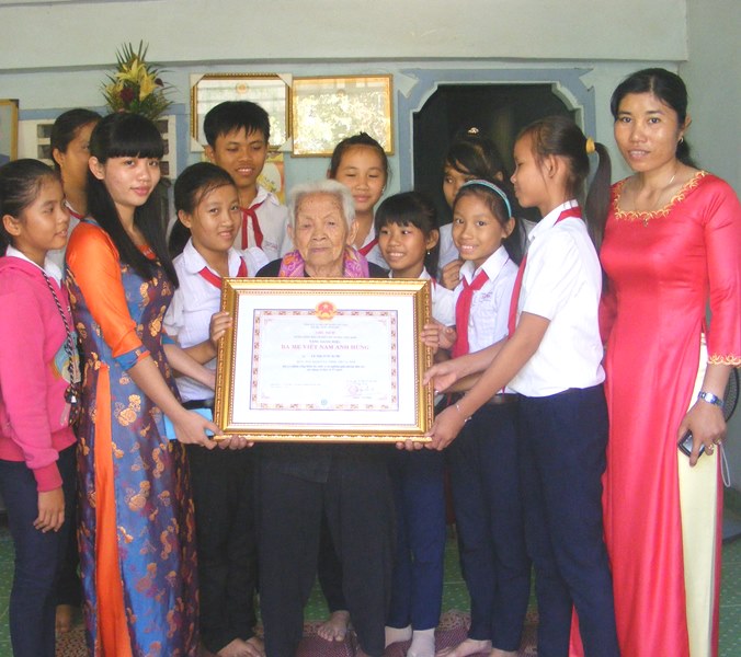 Học sinh Trường THCS Trí Bình, huyện Châu Thành thăm một Bà mẹ Việt Nam anh hùng trên địa bàn xã.