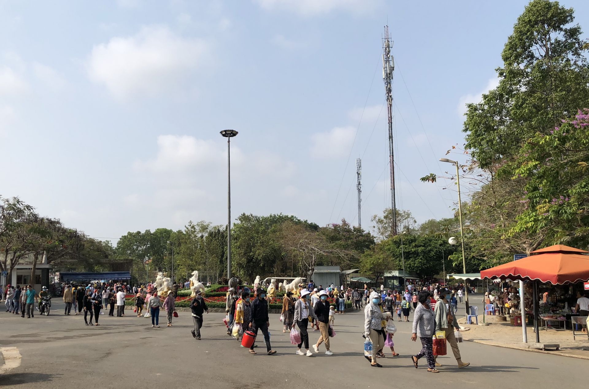 Ngày 15.2 (mùng 4 tết), tại khu du lịch, lượng khách có tăng hơn so với những ngày trước. Công an bố trí lực lượng khắp nơi để giữ gìn an ninh trật tự và bảo đảm an toàn cho bà con đến tham quan. Hệ thống loa phát thanh hoạt động liên tục, nhắc nhở mọi người thực hiện các biện pháp phòng, chống dịch Covid-19 và nâng cao cảnh giác, giữ gìn tư trang, đề phòng kẻ gian móc túi, cướp giật tài sản. Có 1 trường hợp bị kẻ xấu giật dây chuyền, nhờ người này cảnh giác nên giữ lại được tài sản. Đối tượng không thực hiện được hành vi, nhanh chóng tẩu thoát.
