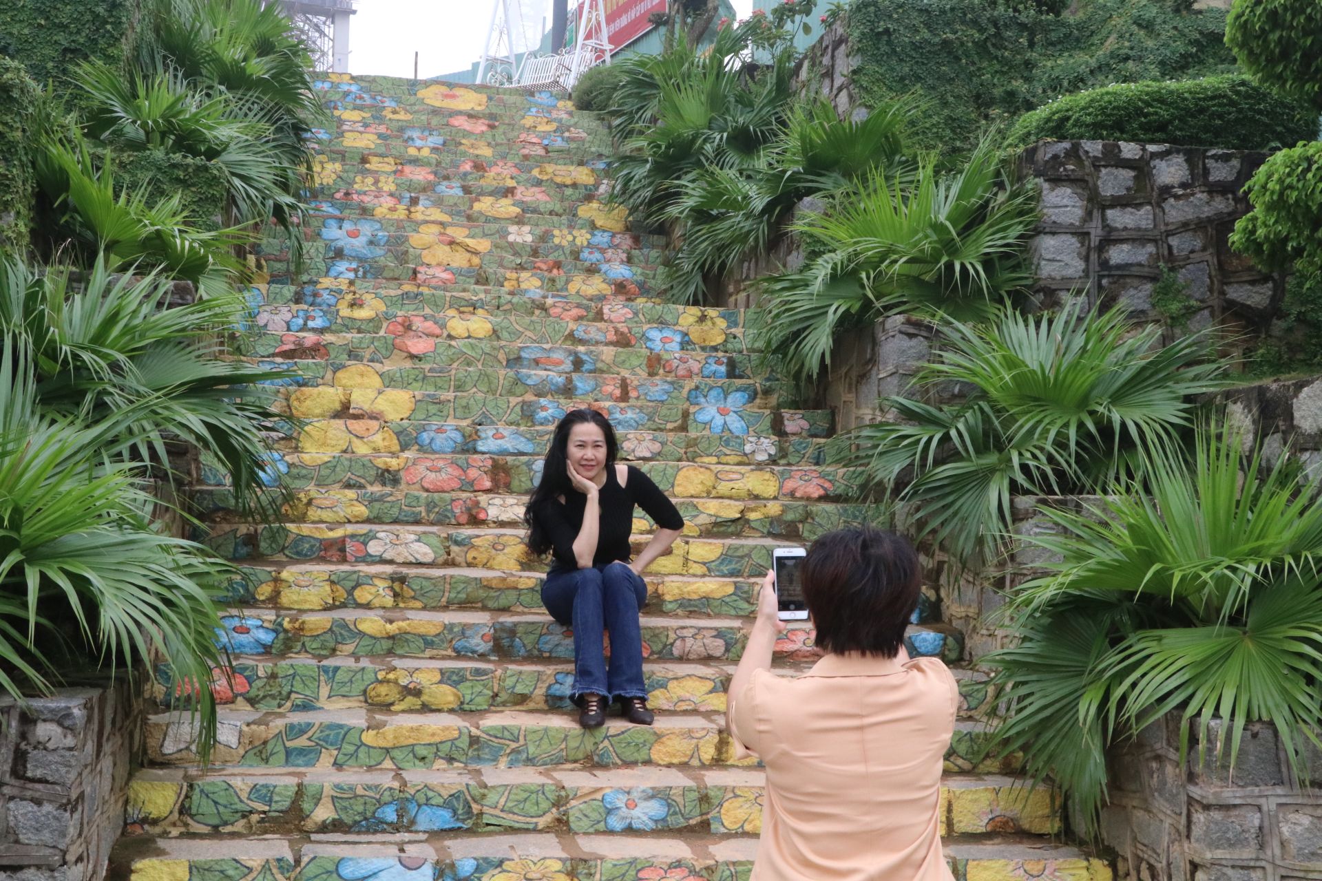 Đường lên núi Bà Đen được Công ty Cổ phần Mặt Trời Tây Ninh sơn trang trí, tạo cảnh quang đẹp hơn. Ảnh Xuân Vũ