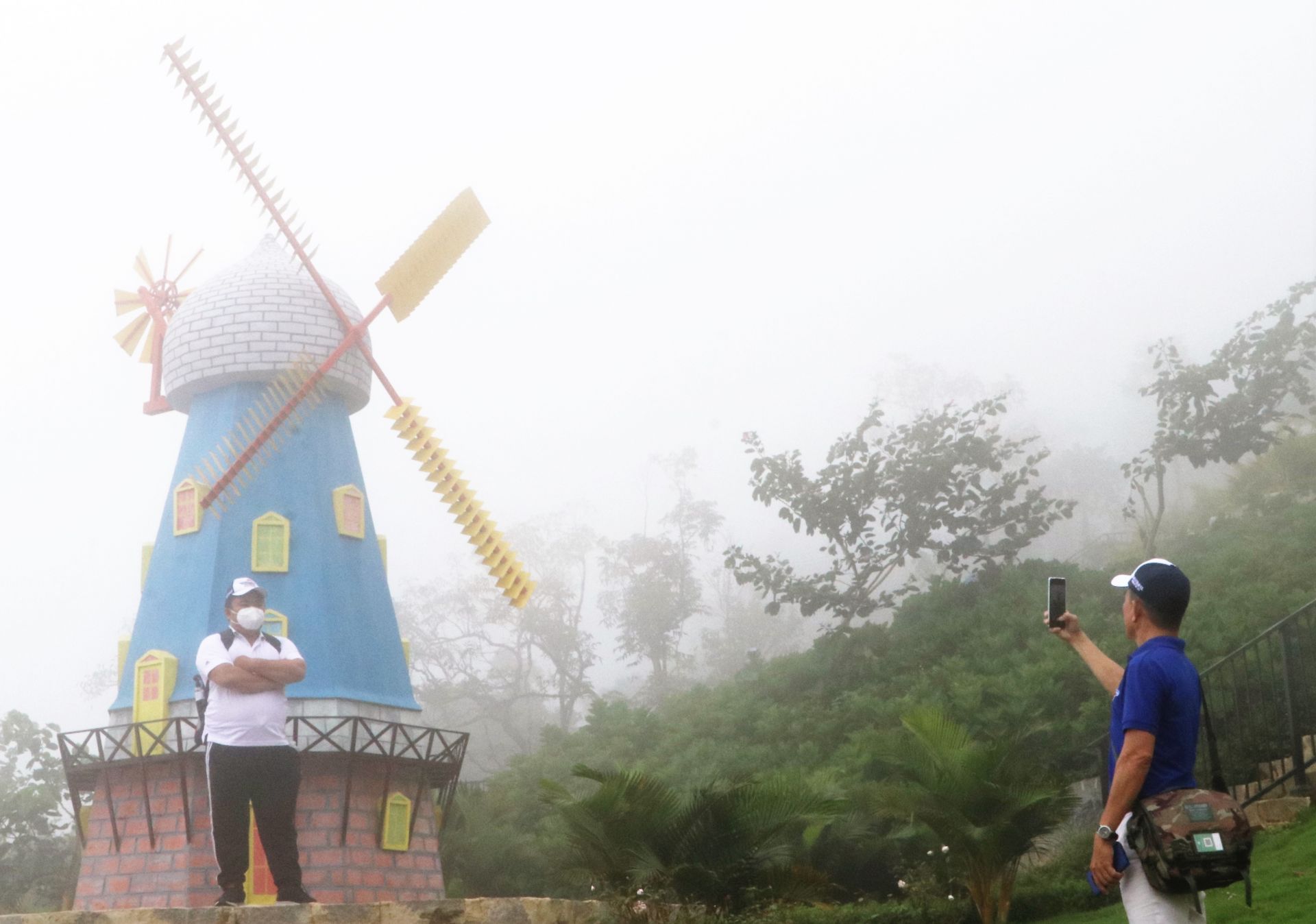 Đỉnh núi Bà Đen mờ ảo trong sương. Ảnh Xuân Vũ