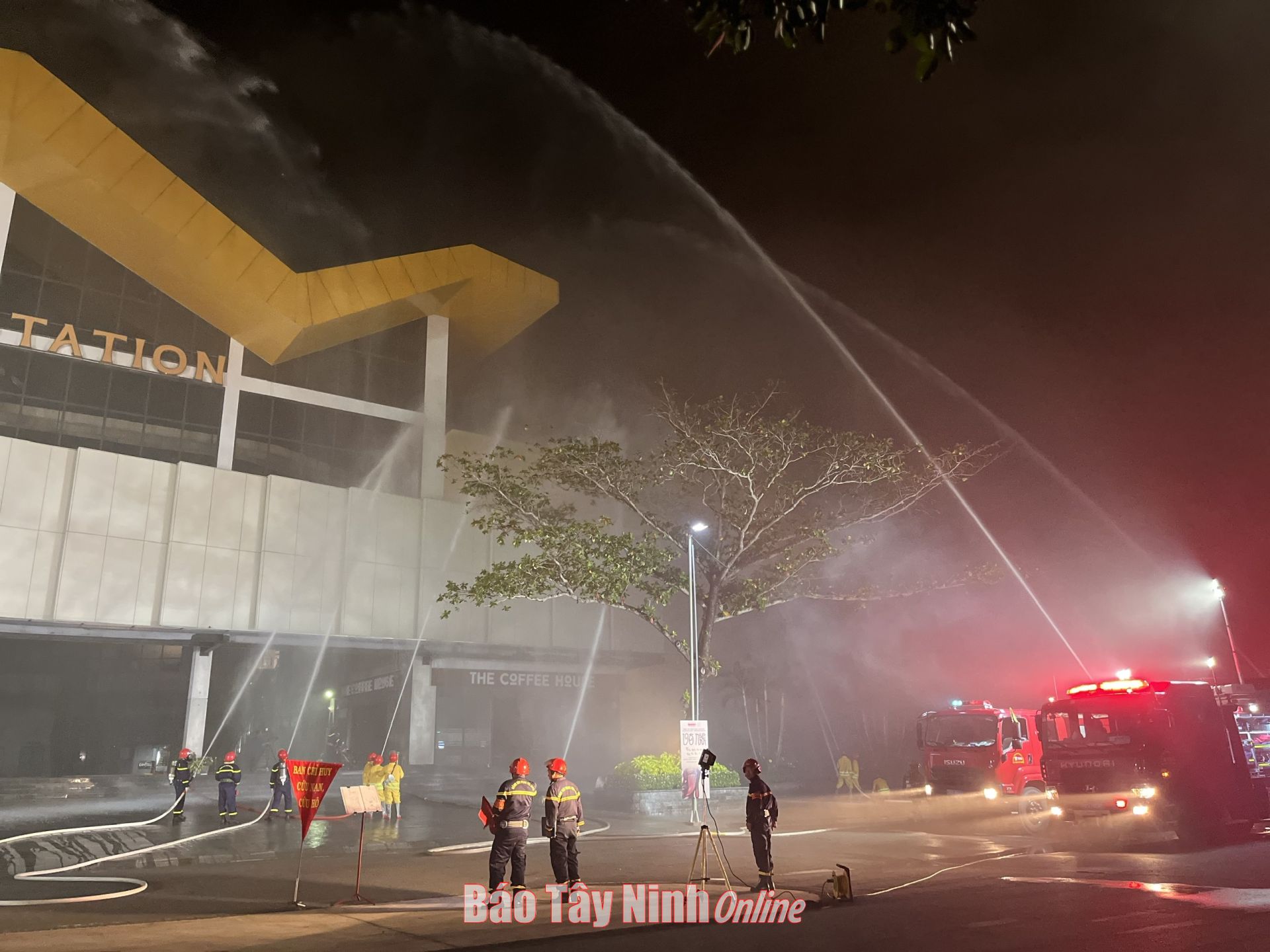 Lực lượng triển khai phun nước chữa cháy.