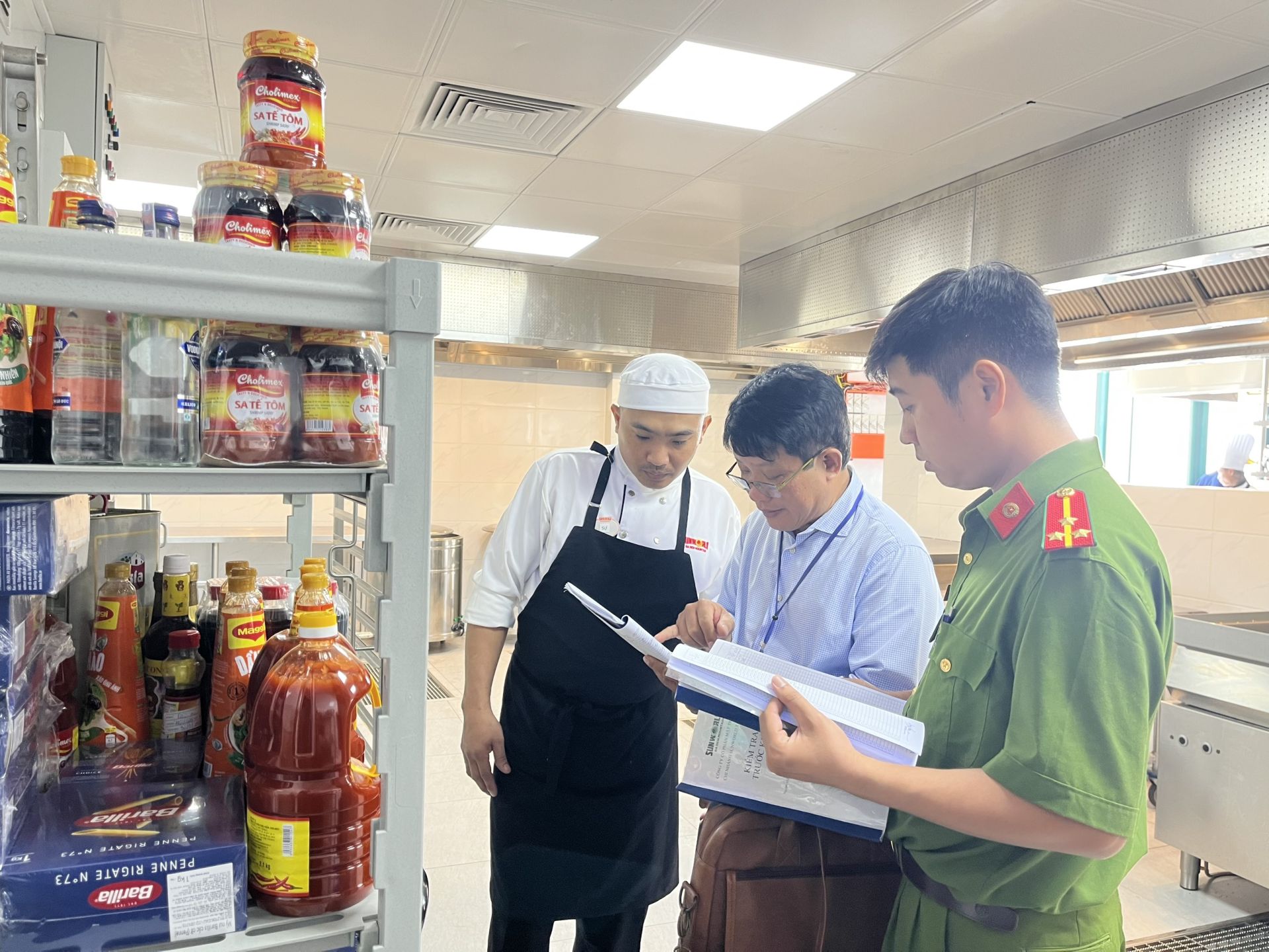 Đoàn kiểm tra sổ kiểm thực 3 bước của nhà hàng Chi nhánh Sun World Tây Ninh.