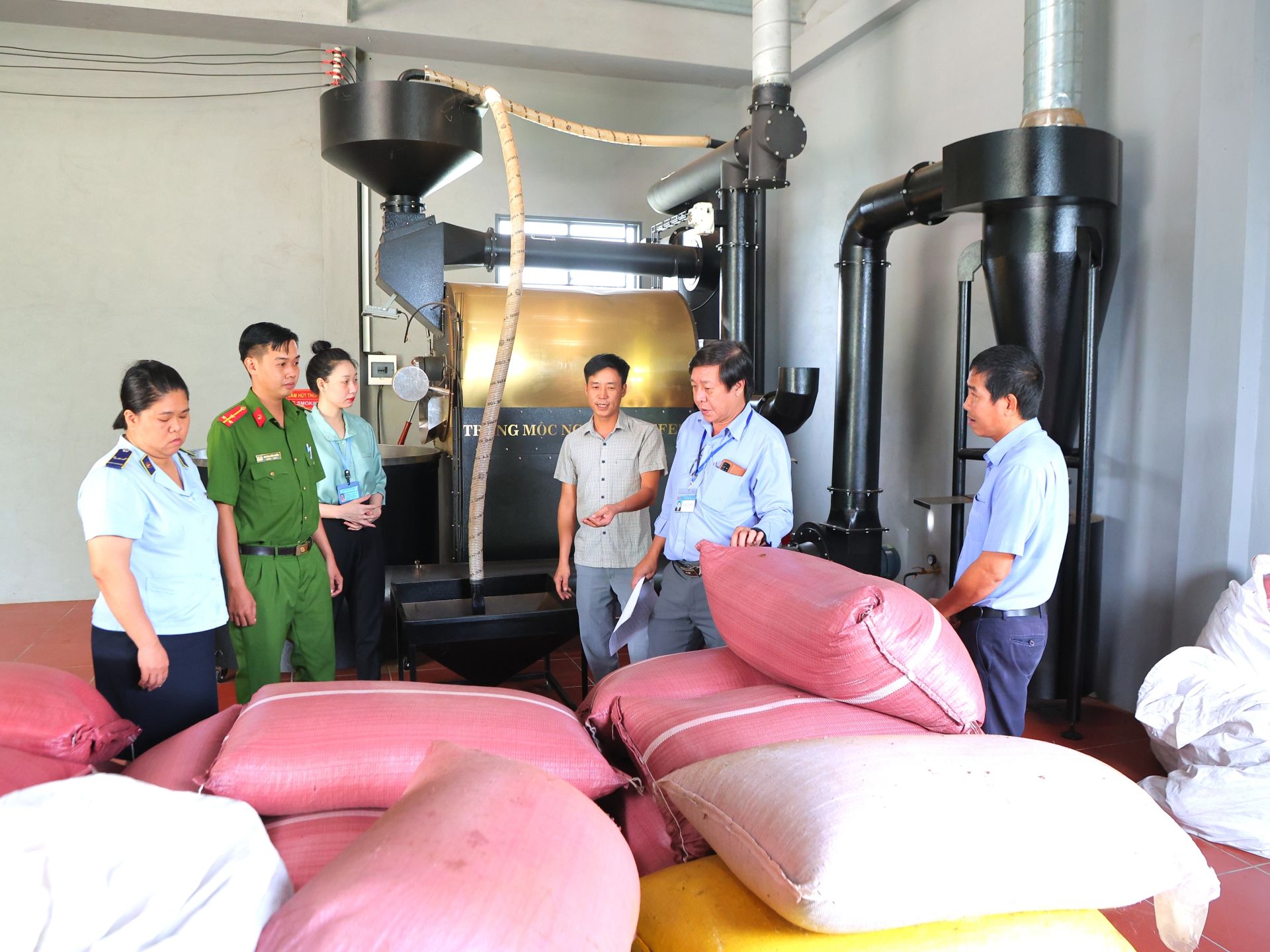 Đoàn kiểm tra liên ngành về ATTP kiểm tra tại cơ sở sản xuất, chế biến cà phê của hộ kinh doanh Trang Mộc Nguyên.