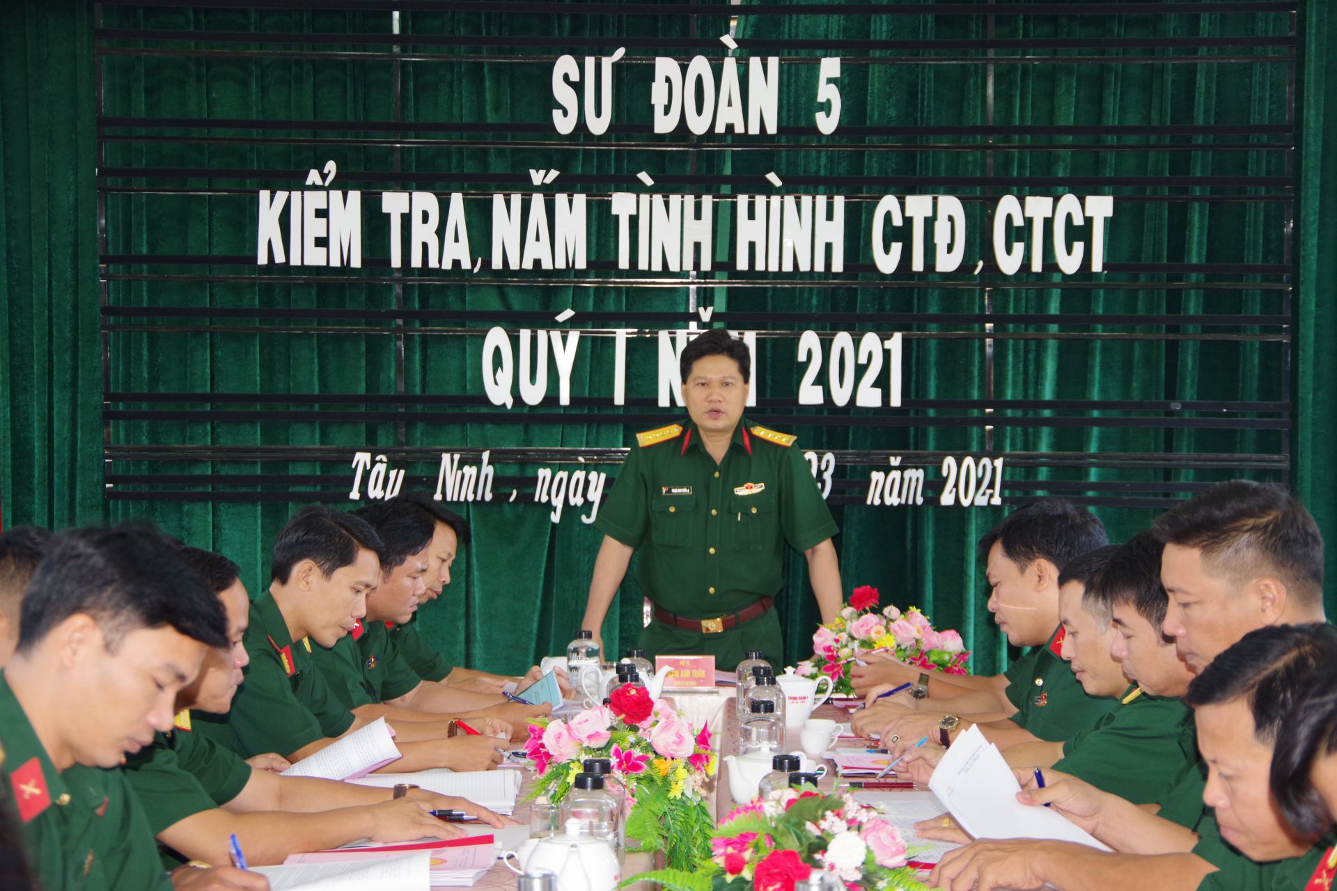 Đoàn công tác của Sư đoàn 5 do Đại tá Phạm Anh Tuấn- Bí thư Đảng ủy, Chính ủy Sư đoàn làm trưởng đoàn kiểm tra, nắm tình hình công tác Đảng, công tác chính trị quý I tại Trung đoàn 5.