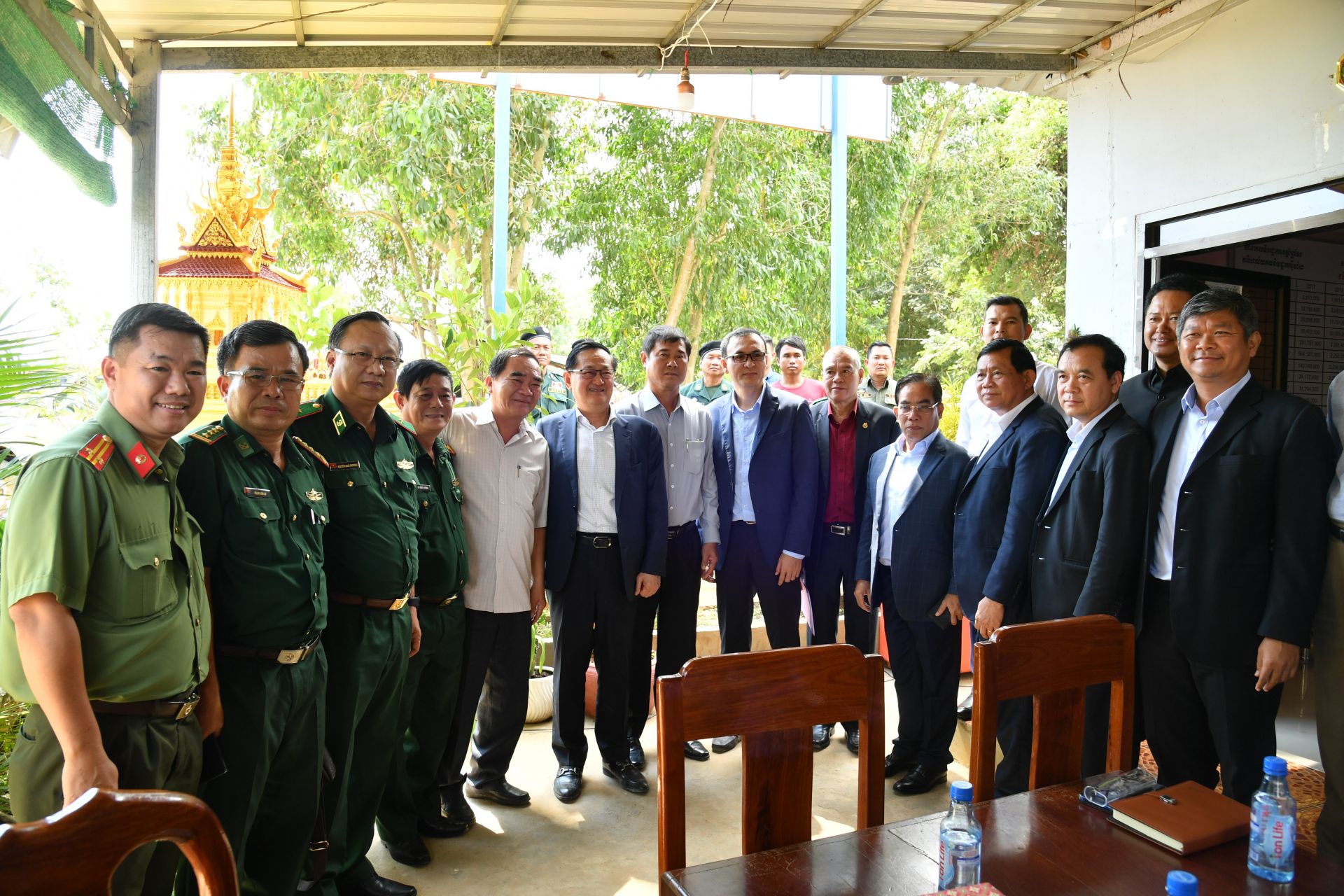 Thống tướng Sok Phol và Thiếu tướng Nguyễn Hoài Phương cùng lãnh đạo 2 tỉnh Tây Ninh và Prey Veng chụp ảnh lưu niệm.