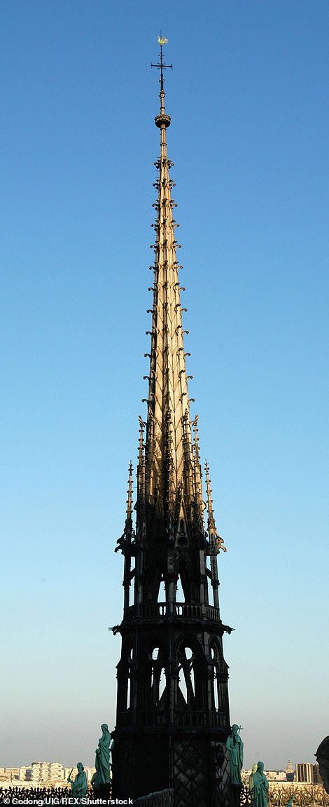 Chóp nhọn hình mũi tên cao 93m trên mái nhà thờ. Chóp này được dựng lên trong giai đoạn cải tạo giữa thế kỷ 19, được làm bằng gỗ sồi bọc chì, nặng 750 tấn. (Ảnh: Rex/Shutterstock)