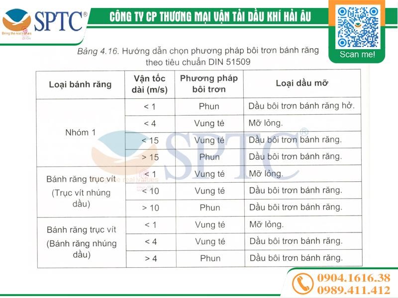 Bảng hướng dẫn lựa chọn phương pháp bôi trơn bánh răng theo tiêu chuẩn DIN 51509