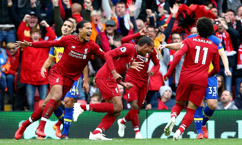 Liverpool lần đầu tiên trong lịch sử thắng cả bảy trận đầu mùa ở giải vô địch Anh. Ảnh: PA.