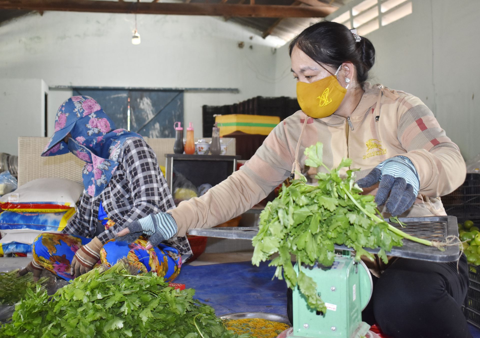 Thành viên HTX Phước Ninh chuẩn bị nông sản để cung cấp cho cửa hàng Bách Hoá Xanh Tây Ninh.