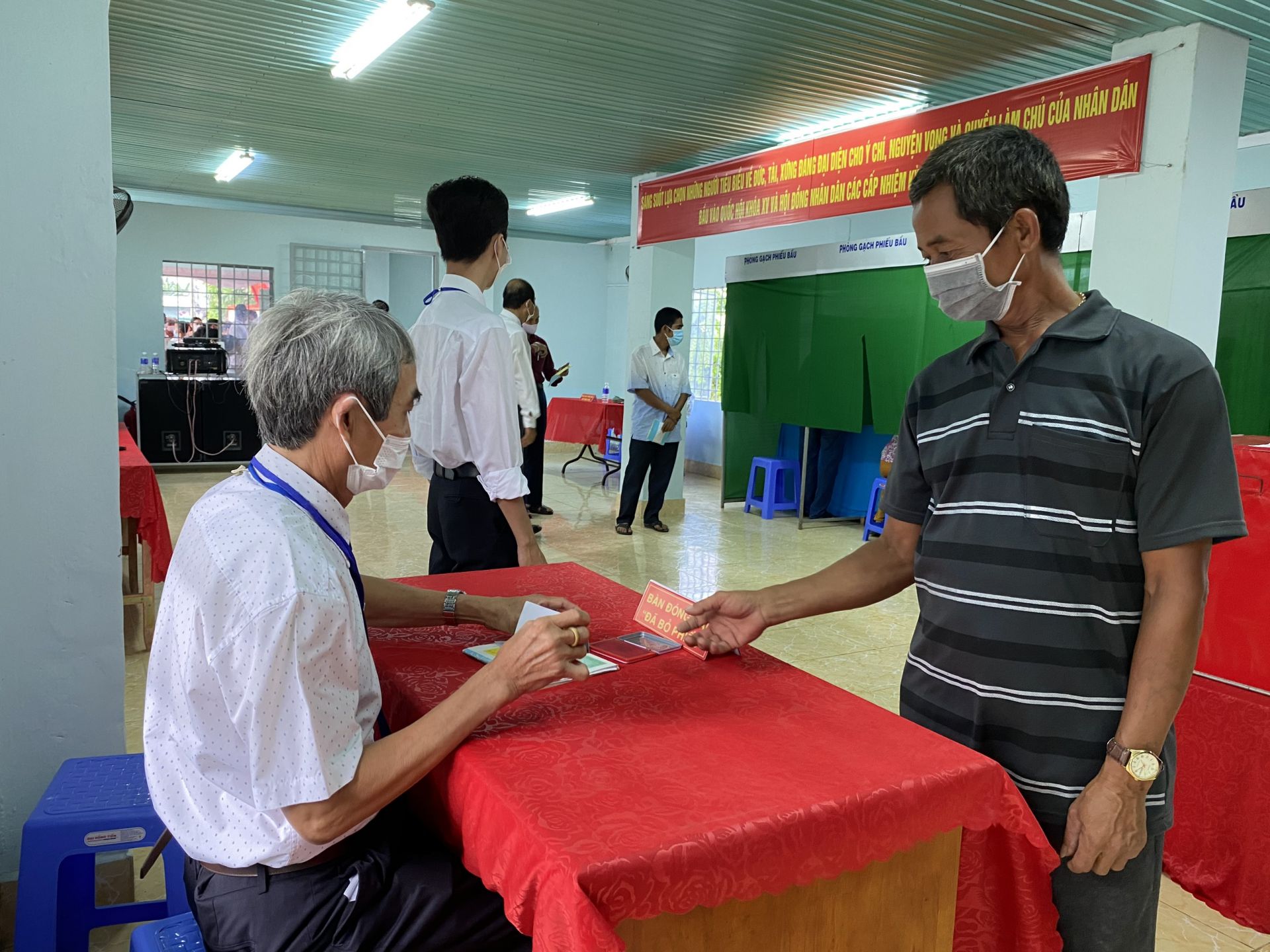 Cử tri đi bầu cử đại biểu Quốc hội khoá XV và HĐND 3 cấp năm 2021 tại xã Thái Bình, huyện Châu Thành. Ảnh minh hoạ