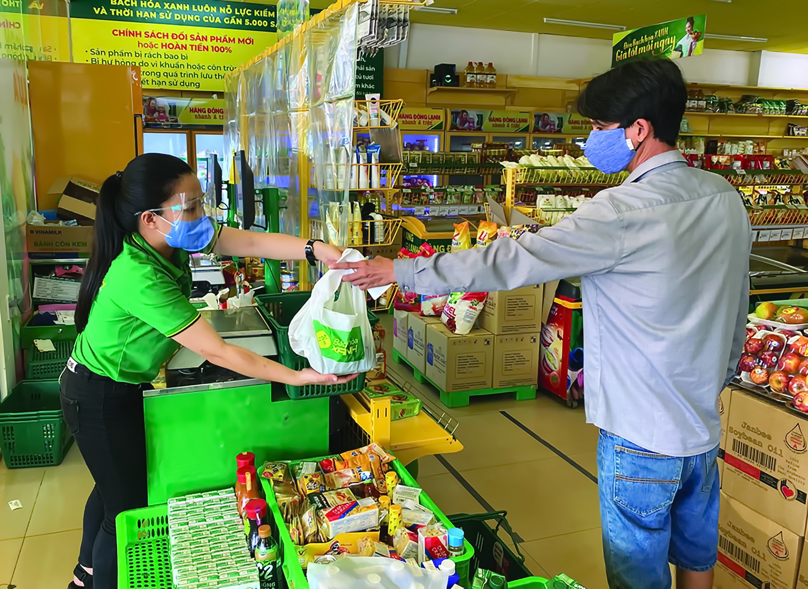 Người dân mua thực phẩm tại cửa hàng Bách hóa xanh Trường Hòa (thị xã Hòa Thành).