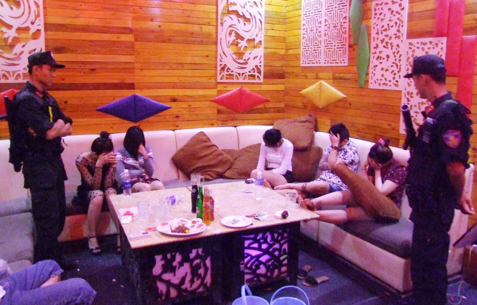 Lực lượng Công an bắt giữ các đối tượng sử dụng trái phép chất ma tuý trong một quán karaoke.