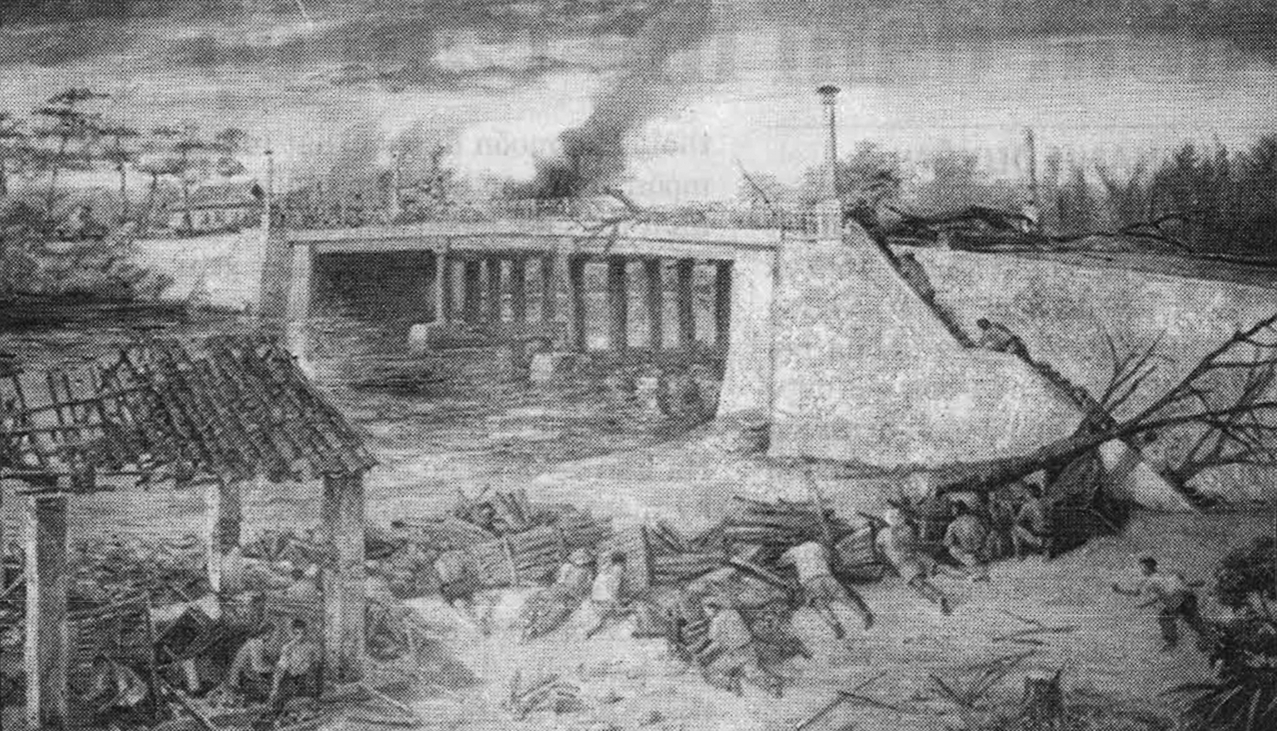 Tranh vẽ trận đánh tại cầu Thị Nghè ngày 27.9.1945 giữa lực lượng tự vệ và quân Pháp, Anh.