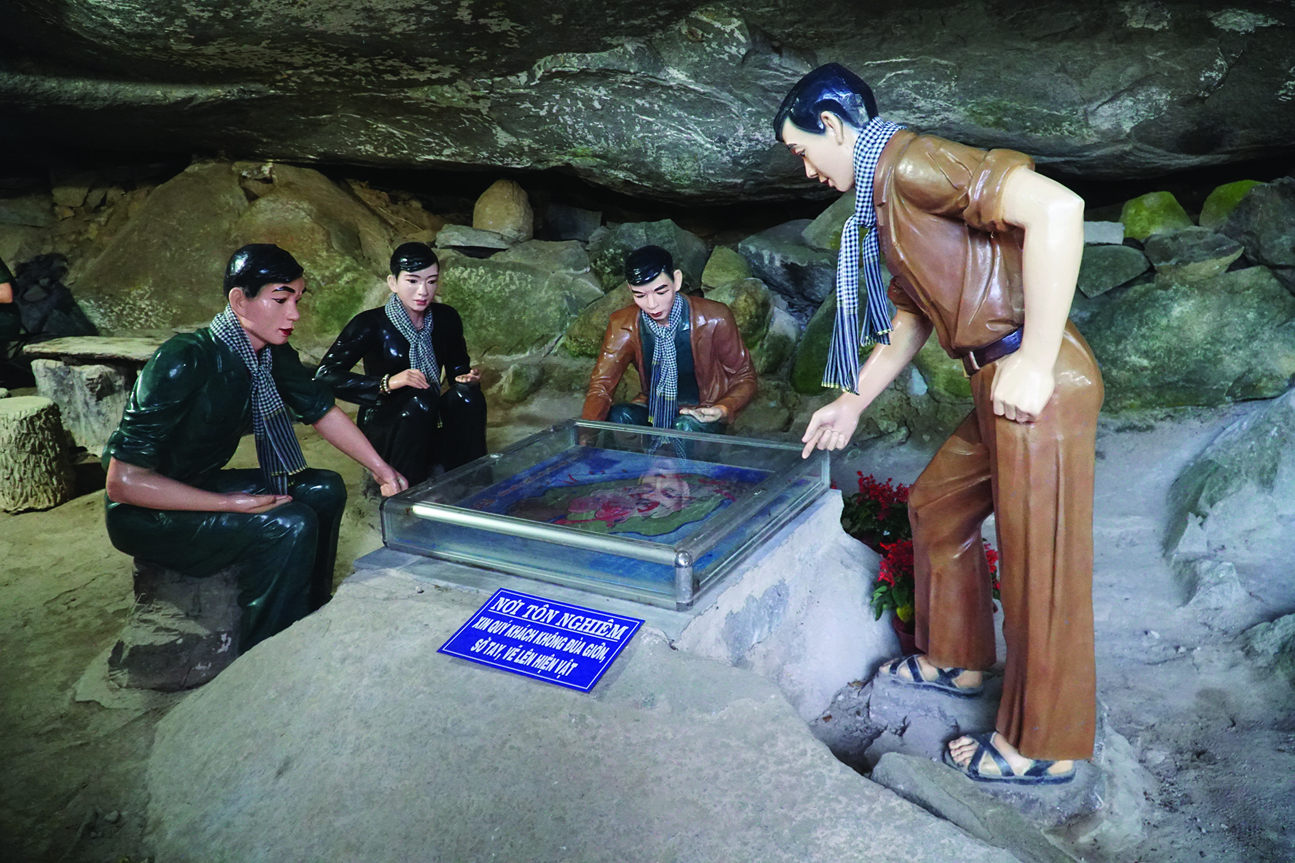 Hình ảnh phục dựng tái hiện hoạt động thời kháng chiến trong động Kim Quang.