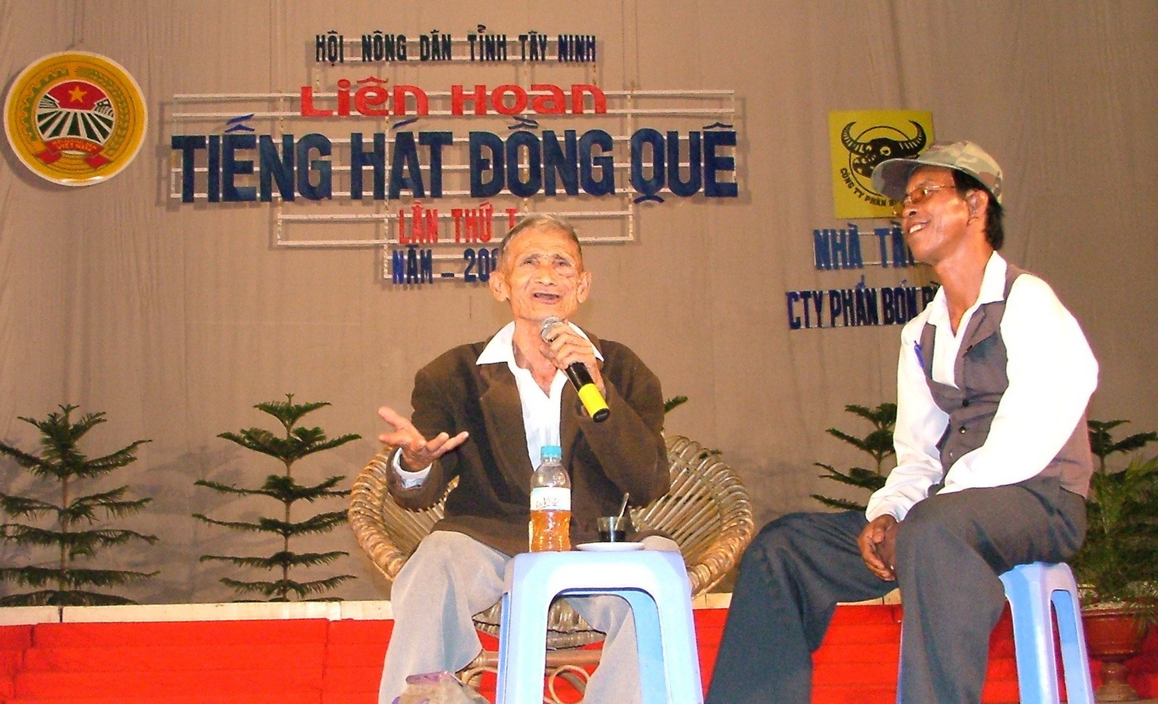 Tại Liên hoan "Tiếng hát đồng quê" lần thứ I - 2005 do Hội Nông dân tỉnh Tây Ninh tổ chức, đến chương trình tham gia liên hoan của Đội văn nghệ Hội Nông dân huyện Trảng Bàng, một cụ già từ hàng ghế khán giả, thủng thỉnh bước lên sân khấu, ông kéo ghế ngồi xuống, mở chiếc giỏ xách còn đầy bụi đất, lôi ra chai nhựa đựng nước trà, mở hũ đựng cà phê rót ra ly, nhấp một ngụp, nói với vào bên trong cánh gà: “Mồ tổ bây, đứng đó đợi tui hát xong rồi đưa tôi về!”.