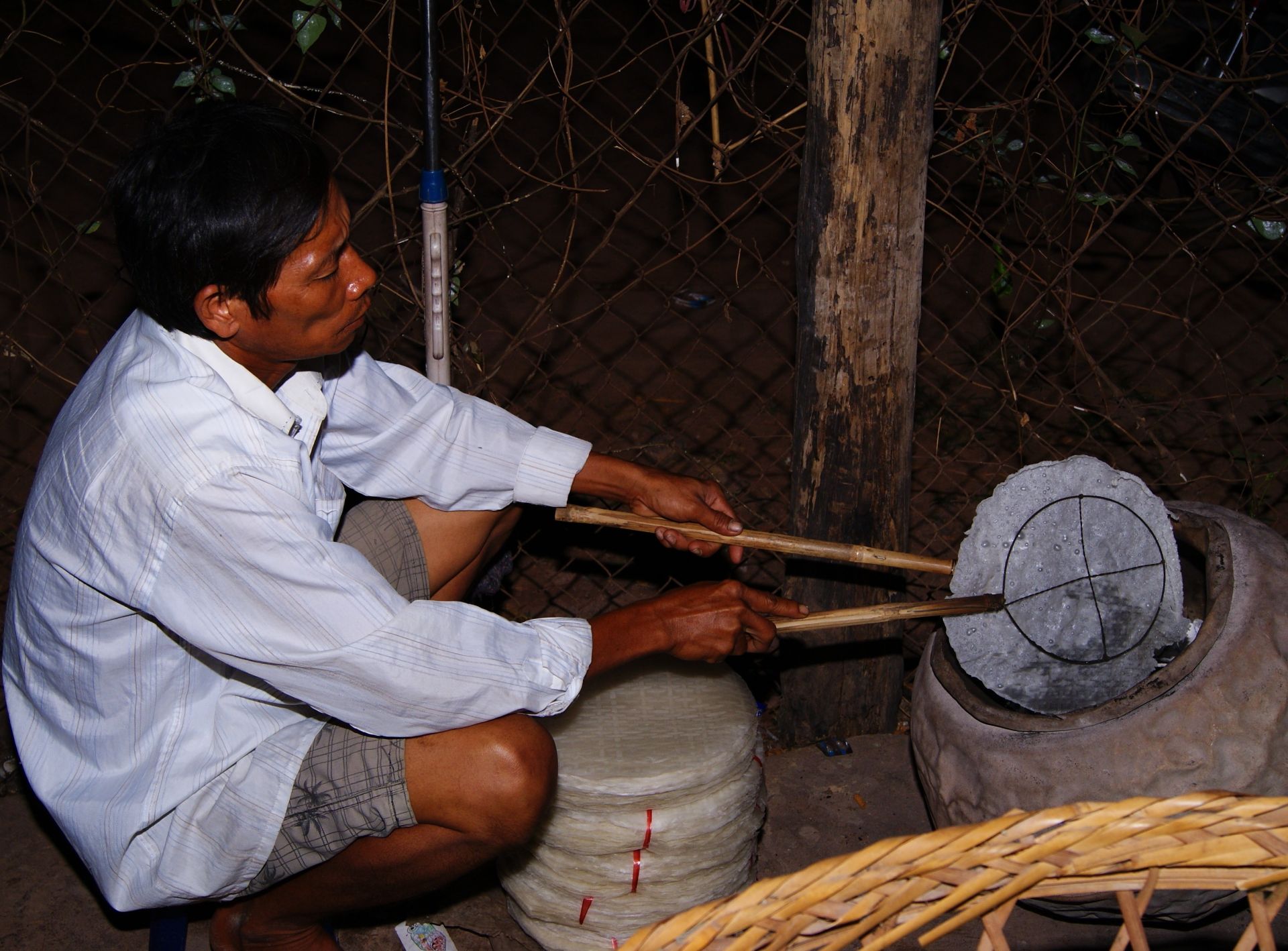 Bà bảo: nghề này, phải thức khuya dậy sớm, ai sợ cực thì không theo được! Làm không có dư đâu nhưng cũng không đói khổ! Không nhờ nó, bà làm sao chống đỡ nổi gánh nặng cơm áo gạo tiền suốt 60 năm qua? Nghề đã thành nghiệp mất rồi. Vì thế, khi tuổi đã cao, bà vẫn không muốn từ bỏ. Mãi 4 năm gần đây bà mới chịu ngưng việc do bị bệnh về mắt. Nghỉ tráng bánh, bà lại chuyển sang nghề nướng bánh.
