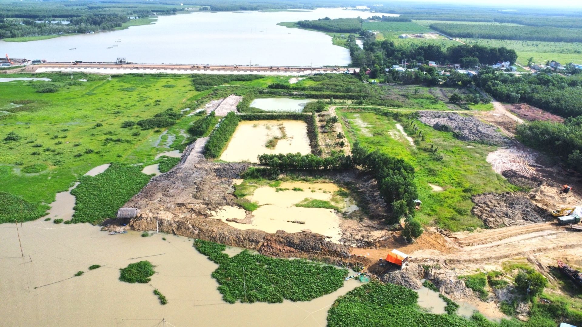 3 ao đang đề cập (bìa trái) phía sau công trình đập Tha La (ảnh chụp ngày 24.7.2024)
