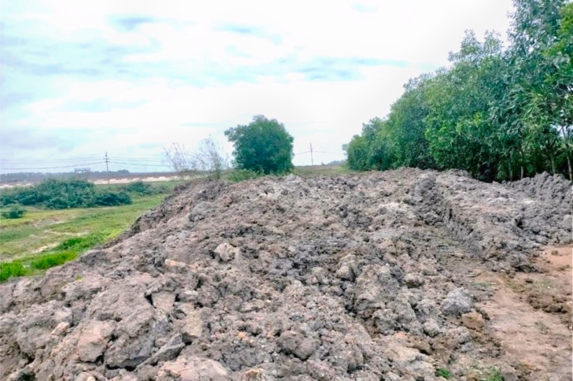 Kết quả kiểm tra tại vị trí gần khu vực đã đóng cửa mỏ và giao về Công ty quản lý cho thấy, trong thửa đất số 26, tờ bản đồ số 54, phát hiện đất tại đây có dấu hiệu bị tác động đào xới, móc đất, đắp lên bờ ao dài khoảng 170m. Tuy nhiên, vào thời điểm đoàn đến kiểm tra thì không có phương tiện nào đang hoạt động hoặc để lại tại hiện trường. Cũng không có đối tượng thực hiện hành vi vi phạm tại đó, nên đoàn không có cơ sở để lập biên bản làm việc với người thực hiện hành vi tác động lên đất bán ngập. Đây là vị trí đất bán ngập thuộc hồ Dầu Tiếng do Công ty quản lý.