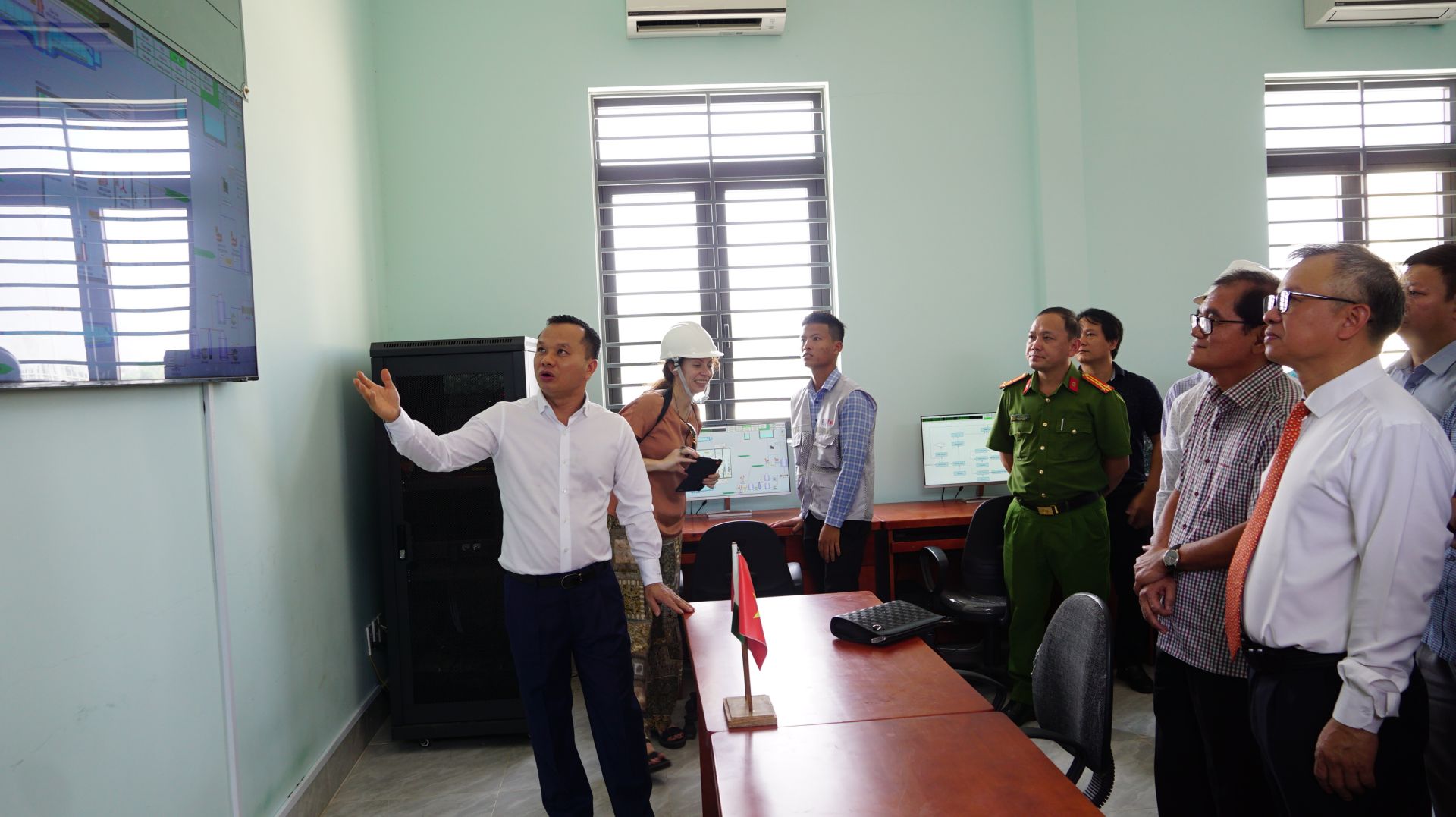 Lãnh đạo tỉnh tham quan Trung tâm Điều hành hệ thống xử lý nước thải tại Nhà máy xử lý nước thải thành phố Tây Ninh.