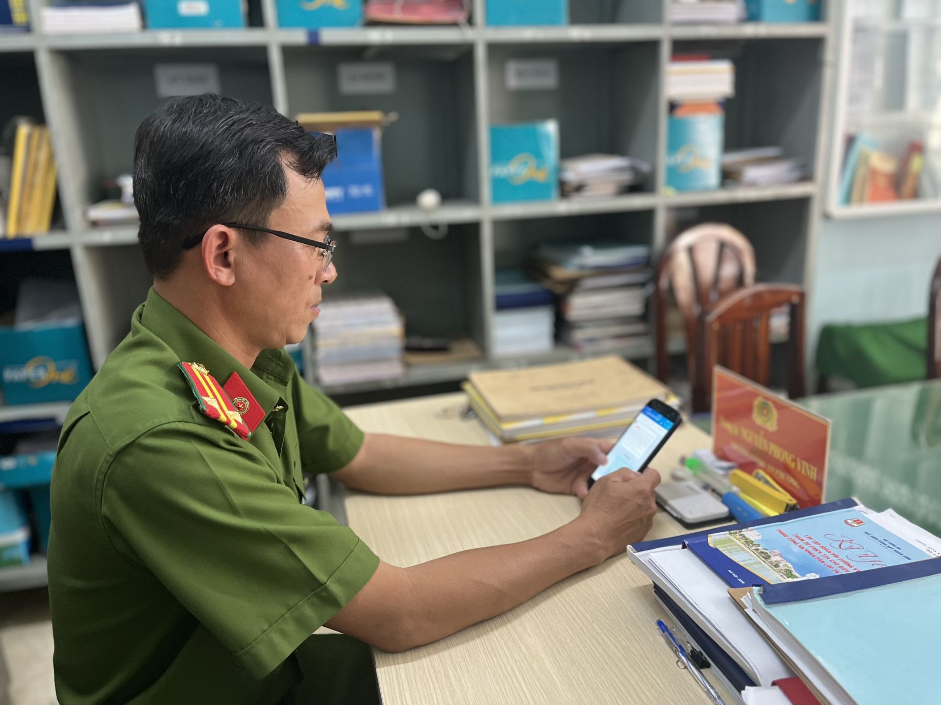 Cán bộ Công an theo dõi thông tin trên các nhóm zalo, kịp thời xử lý tin báo của người dân.