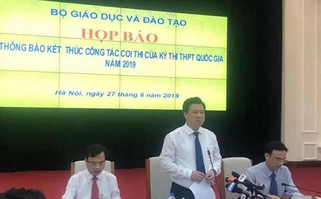 Chiều 27-6, Bộ Giáo dục và Đào tạo tổ chức họp báo kết thúc công tác coi thi Kỳ thi THPT quốc gia năm 2019 tổ chức từ ngày 24 đến ngày 27-6 tại tất cả các tỉnh, thành phố trực thuộc Trung ương. Theo đó, kỳ thi diễn ra theo đúng kế hoạch đã đề ra.