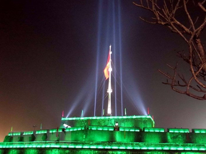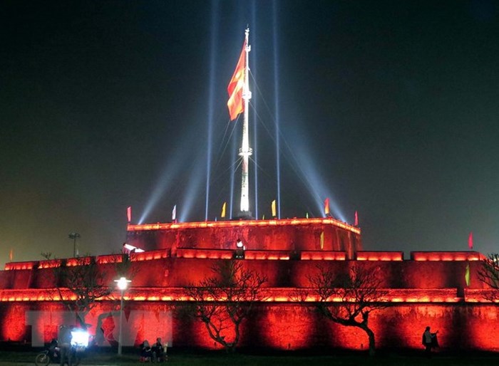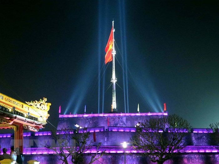 Kỳ đài Huế dưới ánh sáng của 1.000 đèn Led. (Ảnh: Quốc Việt/TTXVN)