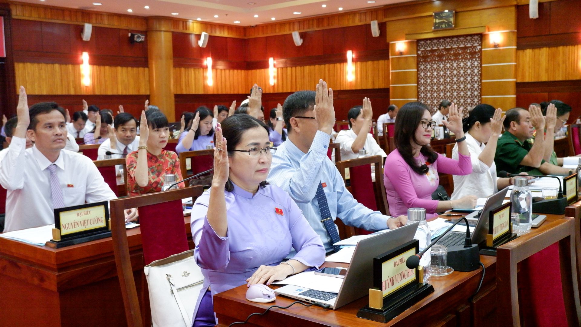 Đại biểu biểu quyết thông qua dự thảo Nghị quyết tại một kỳ họp HĐND tỉnh.