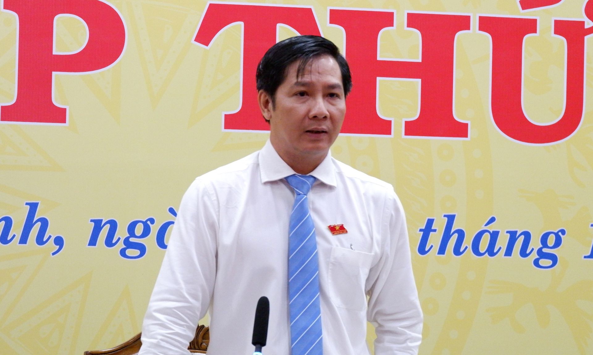 Bí thư Tỉnh uỷ, Chủ tịch HĐND tỉnh Nguyễn Thành Tâm phát biểu tại một kỳ họp.