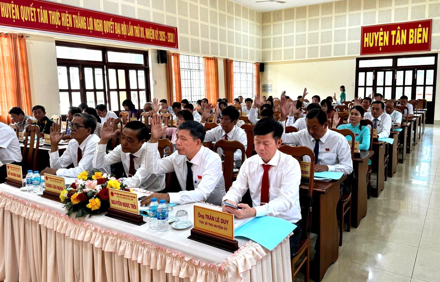 Tại kỳ họp, HĐND huyện thông qua Nghị quyết về việc miễn nhiệm Uỷ viên UBND huyện Tân Biên nhiệm kỳ 2021-2026 đối với bà Nguyễn Thị Như Anh– nguyên Trưởng Phòng Nông nghiệp và Môi trường huyện; ông Nguyễn Quốc Hải- nguyên Trưởng Công an huyện; bà Nguyễn Thị Thu Yên- nguyên Trưởng Phòng Lao động – Thương binh và Xã hội huyện, do chuyển công tác.
