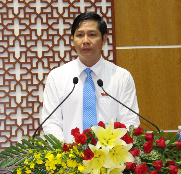 Ông Lê Anh Tuấn- Trưởng ban Kinh tế - Ngân sách HĐND tỉnh trình bày báo cáo thẩm tra tình hình thực hiện kế hoạch phát triển kinh tế - xã hội 6 tháng đầu năm và nhiệm vụ trọng tâm 6 tháng cuối năm 2017.