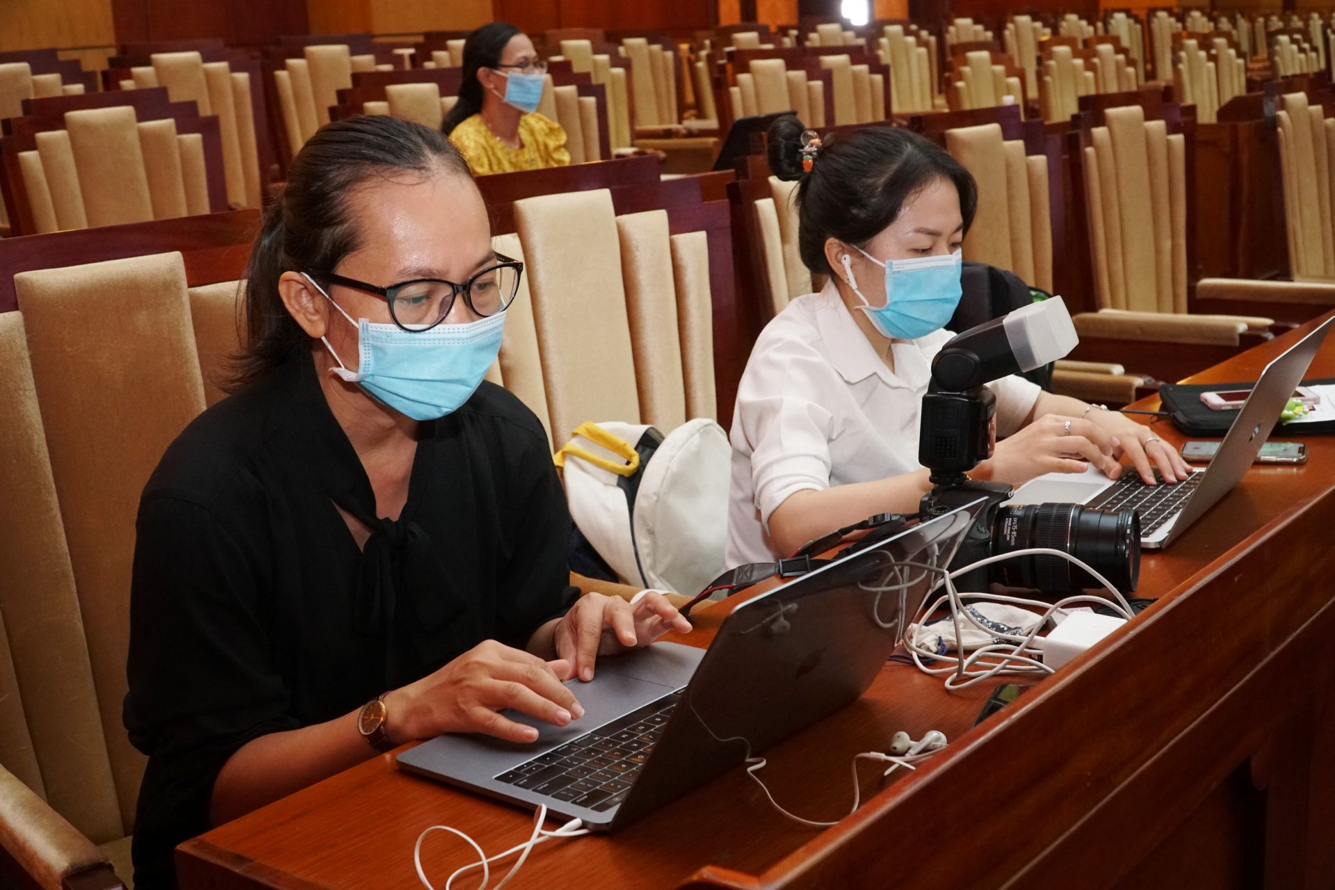 Phóng viên Báo Tây Ninh hối hả tác nghiệp đưa tin nhanh.