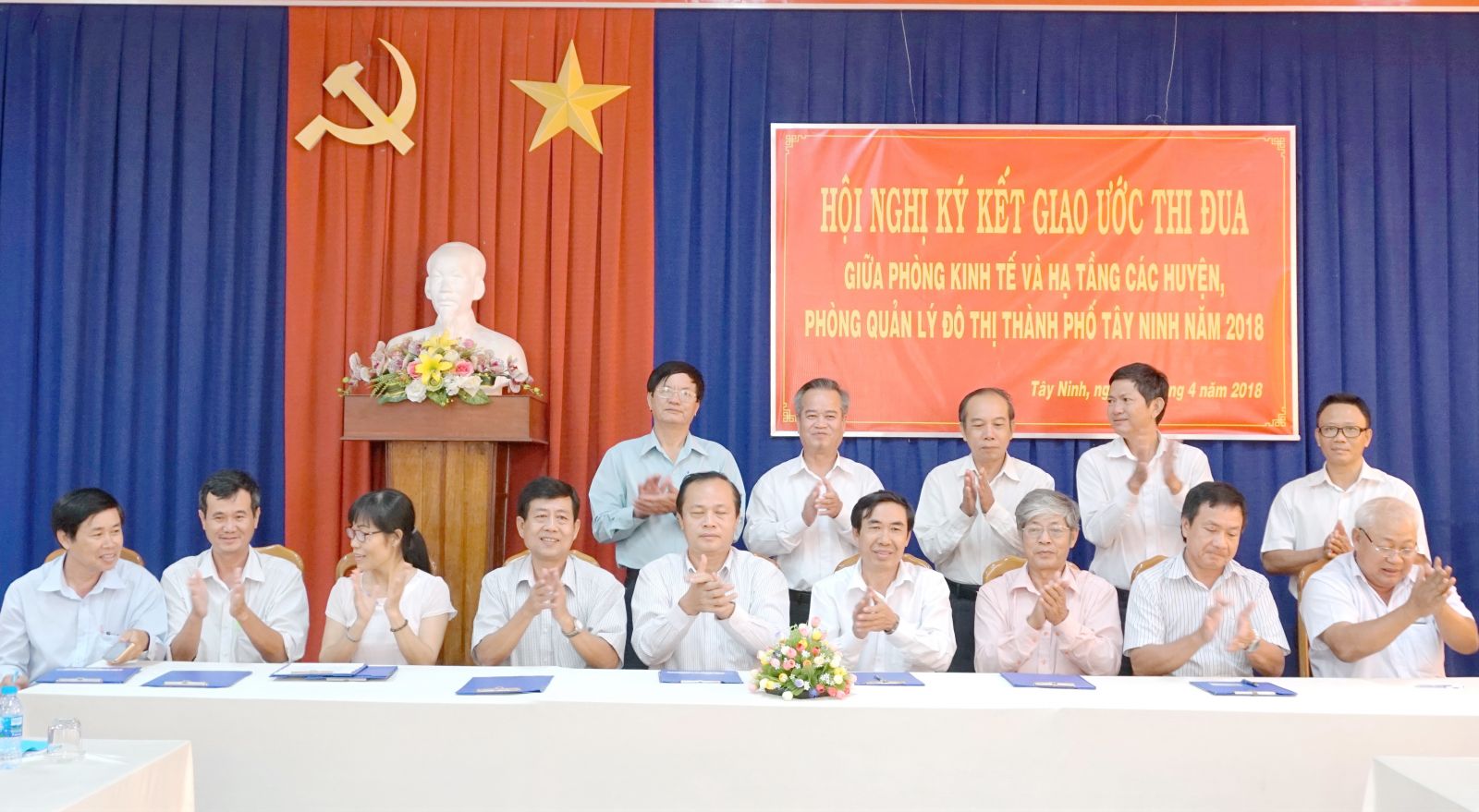 Lãnh đạo Phòng kinh tế hạ tầng các huyện và Phòng Quản lý đô thị Thành phố Tây Ninh ký kết giao ước thi đua năm 2018.