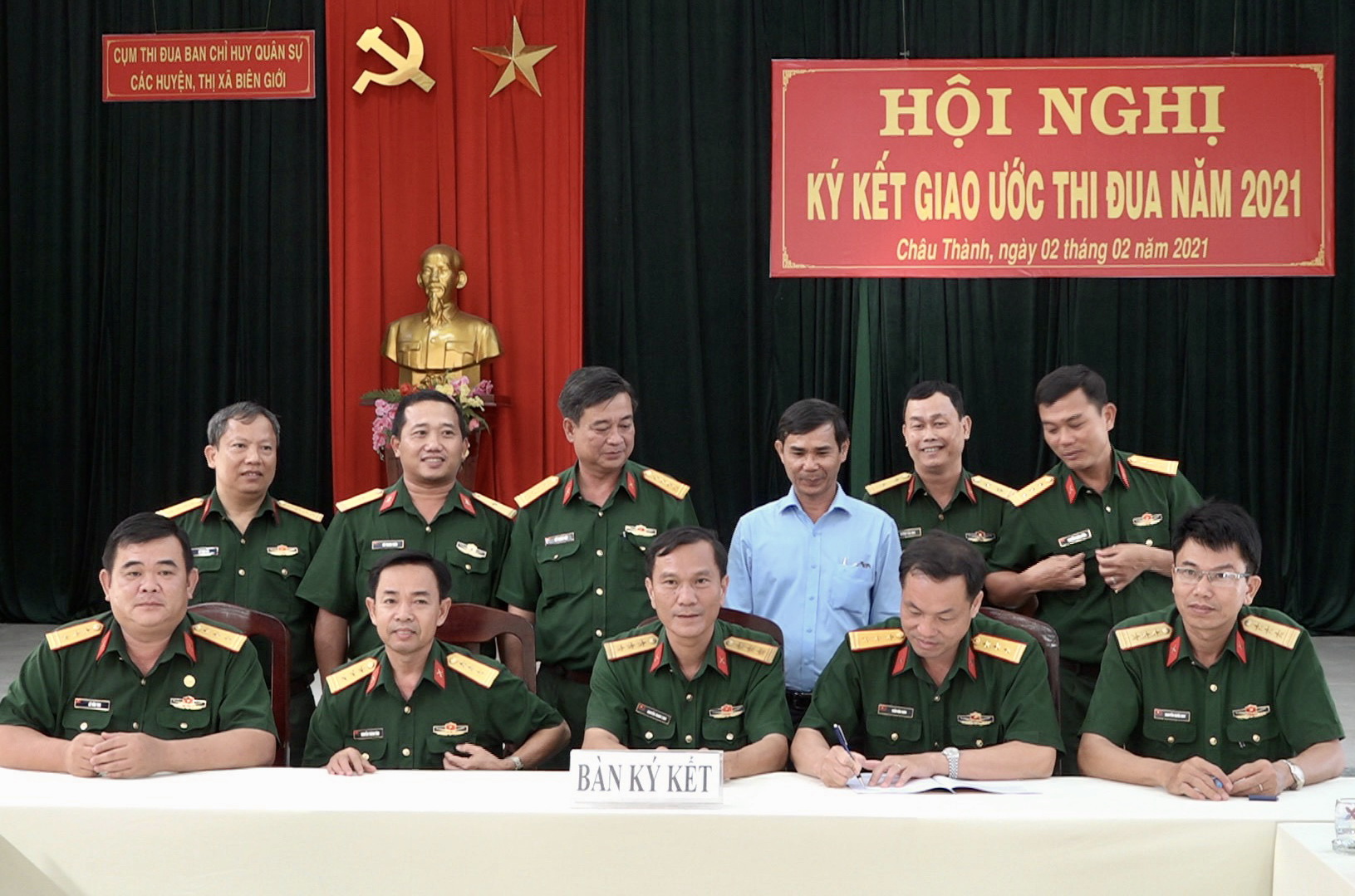 Chiều 2.2, tại huyện Châu Thành, Cụm thi đua Ban chỉ huy quân sự các huyện, thị xã biên giới gồm 5 đơn vị tổ chức Hội nghị ký kết giao ước thi đua năm 2021.